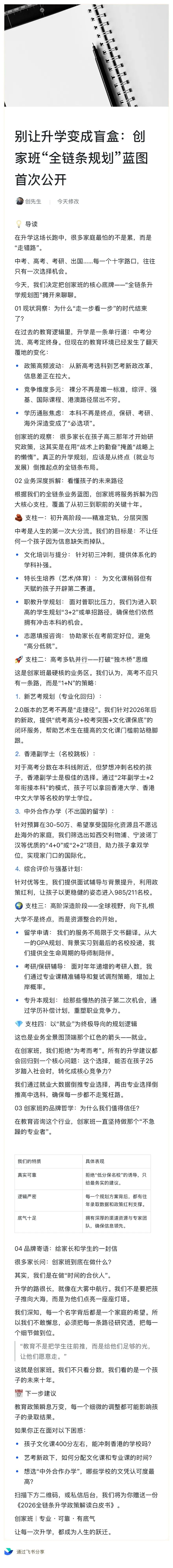 >别让升学变成盲盒:创家班“全链条规划”蓝图首次公开