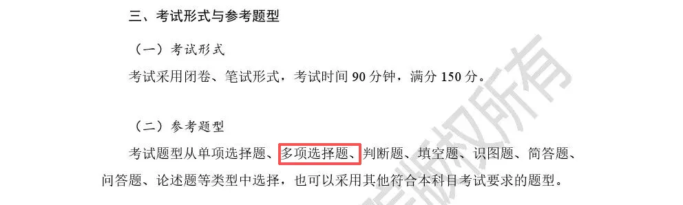 2026年新版考纲专业课《植物学》科目的题型对比复习参考考纲,删除了多项选择题。