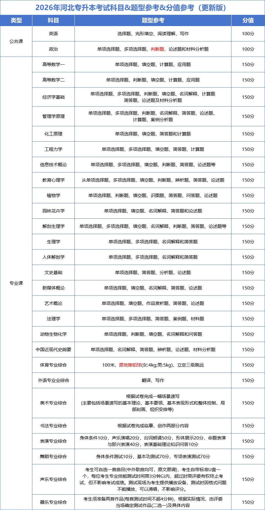 此前官方回复,26年河北专升本不再公布样卷,但是考纲里面也有参考题型。小橘子对比新旧考纲,发现多科目参考题型变化,快一起来看看!