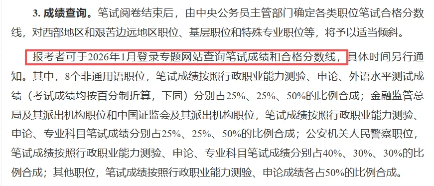 2026年国考笔试成绩预计2026年1月中旬公布