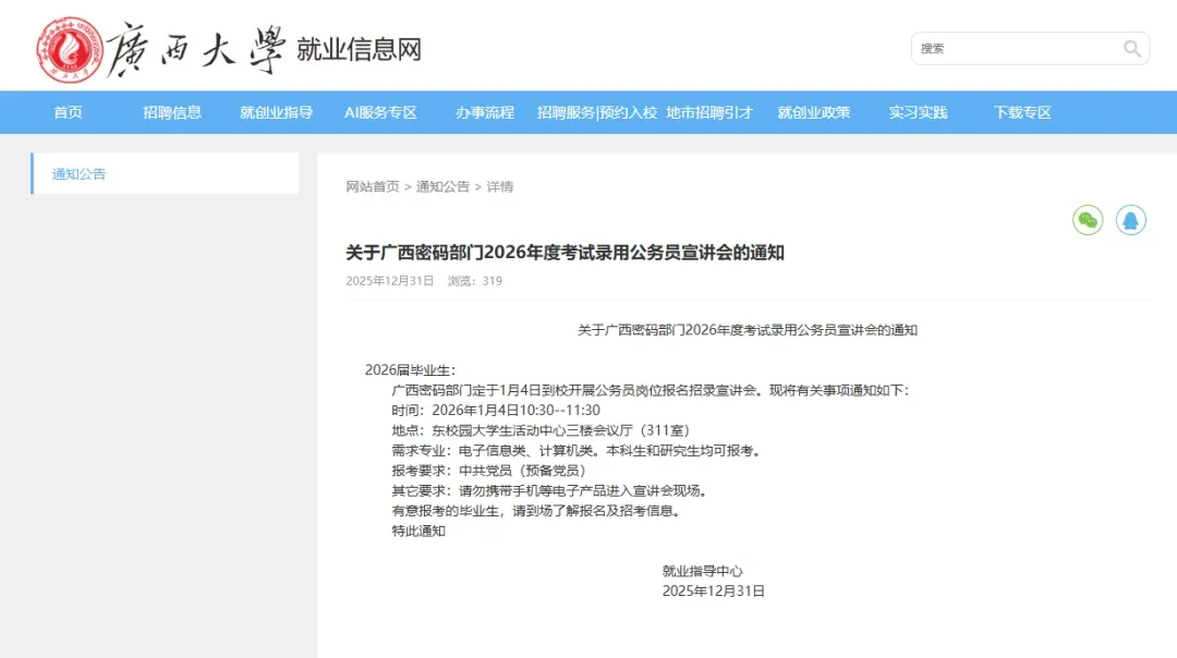宣讲会的通知在广西大学就业信息网发布