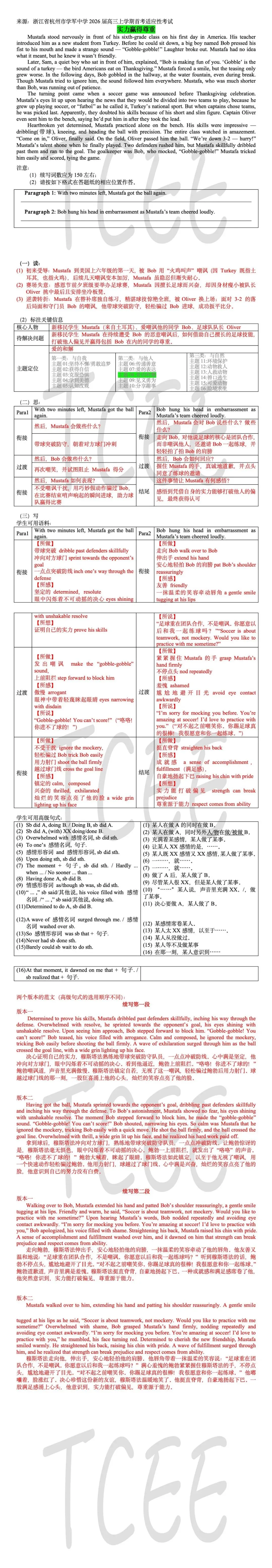 >杭州学军中学首考适应性考试续写|实力赢得尊重|读后续写从构思-词块-高级句式