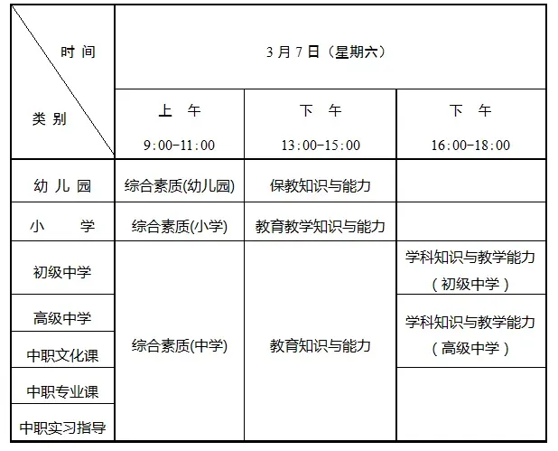 中小学教师资格考试(笔试)日期为2026年3月7日,具体时间安排如下: