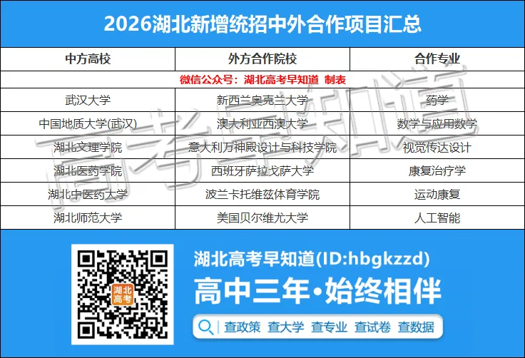 本次湖北地区新增的中外合作办学“阵容”相当亮眼,可简单概括为 “1个机构 + 6个项目”,对湖北的考生家庭来说,这无疑是一个重磅利好消息——在家门口也能拿到世界级大学文凭,分数不够理想也能通往名校的!