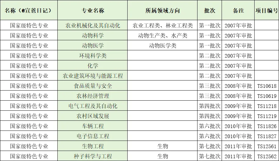国家级特色专业: