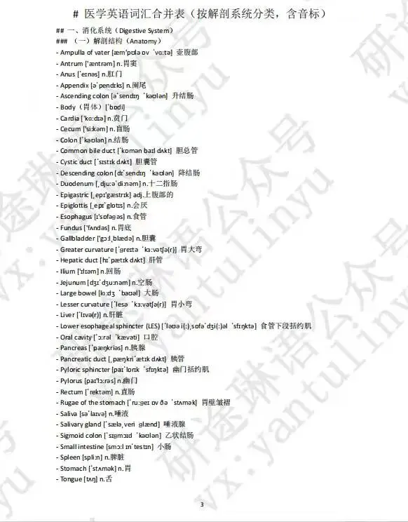 学习医学文献时常遇到专业词汇的障碍,我为大家准备了一份限时福利——一份由我熬夜整理的医学专业词汇表,涵盖八大系统核心术语,助你在备考路上方向清晰、事半功倍。