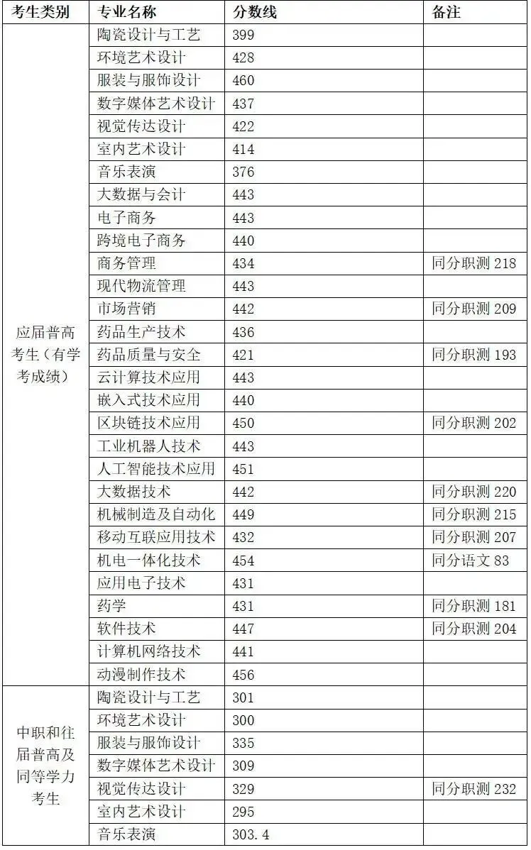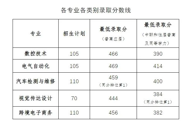 输配电工程技术 | 应届普通高中毕业考生(第一类考生) | 447.5 | |