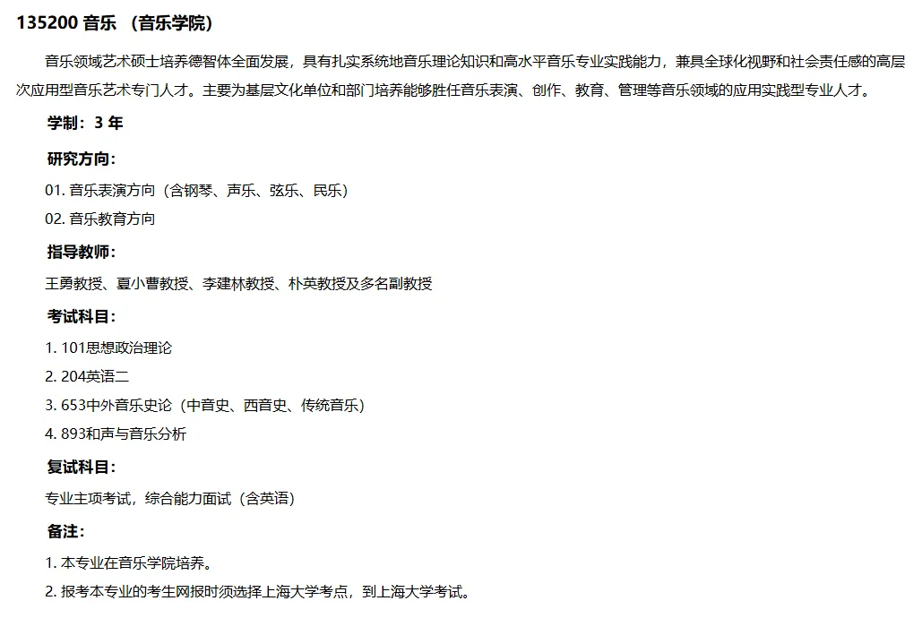 音乐考研 | 2026年上海大学硕士招生简章、专业目录、参考书