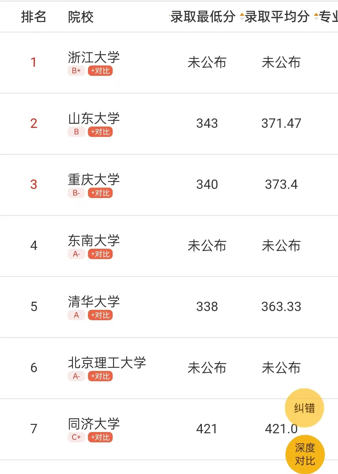 排名支持筛选地区、学校水平、学科实力等维度,支持按照难度指数、招生人数、录取分数、专业课得分数、复试刷人比例进行降序排名。