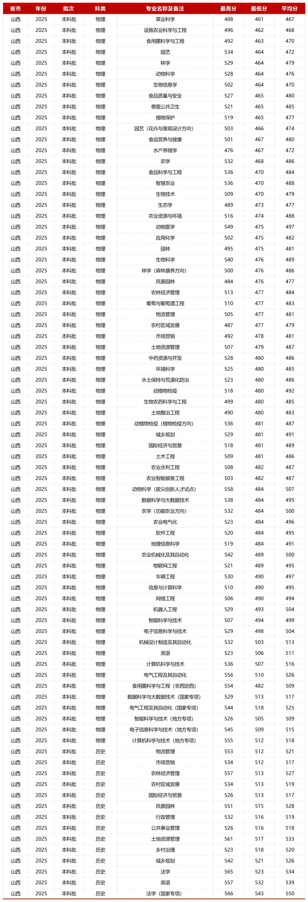 数据均来源于山西农业大学招生网,大家可以下载图片自行浏览查看,欢迎大家转发。高考资讯/升学规划/志愿填报/新高考选科