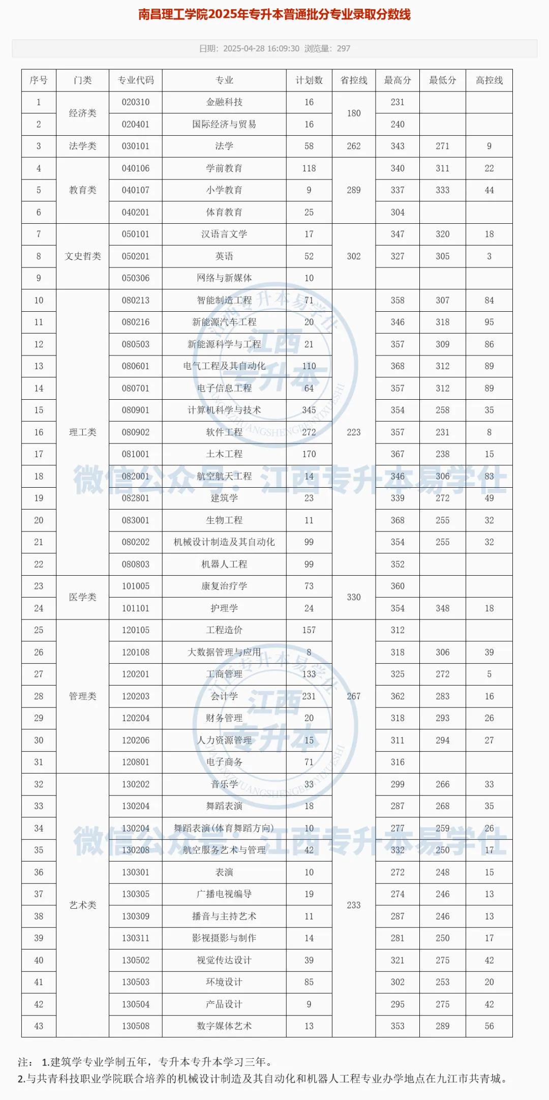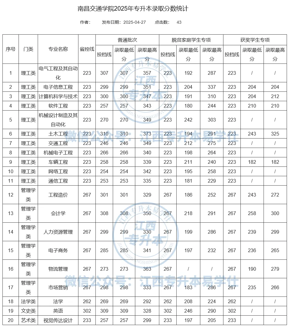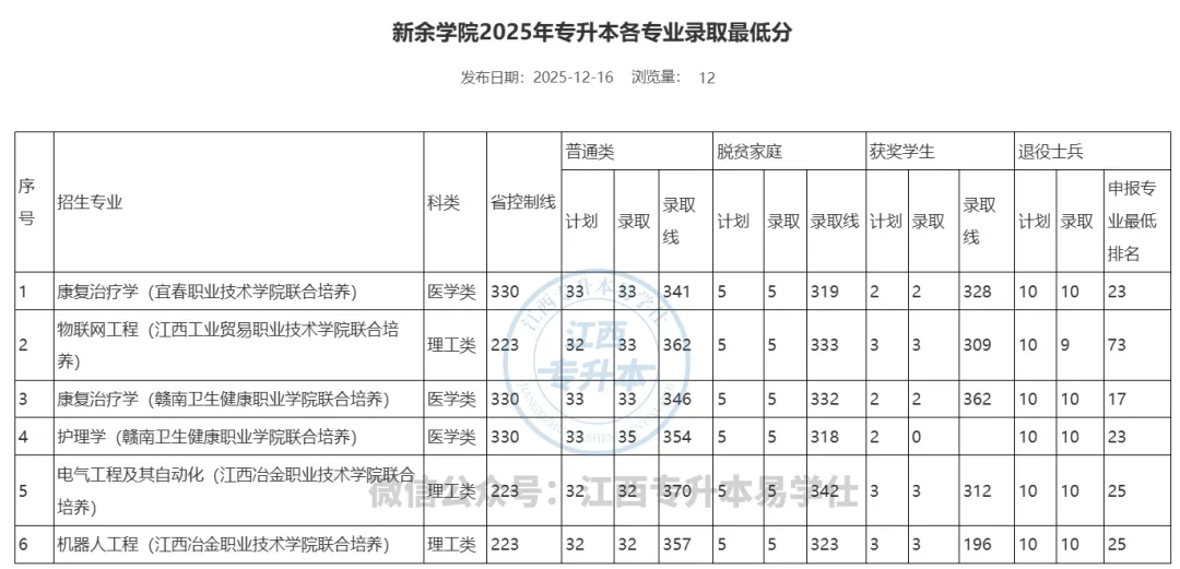 *截至目前已有13所江西专升本招生院校公布分数线:
