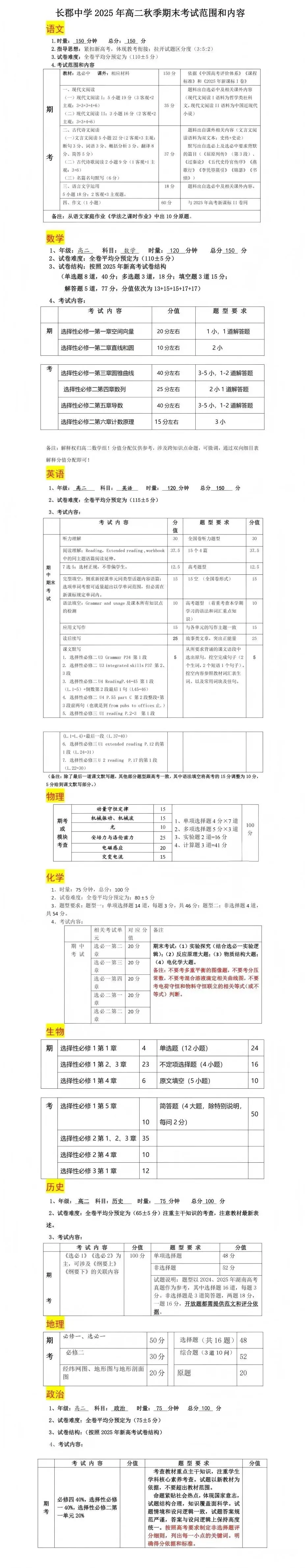 长郡中学高二期末考试安排来了(附往年期末考试原卷及答案)