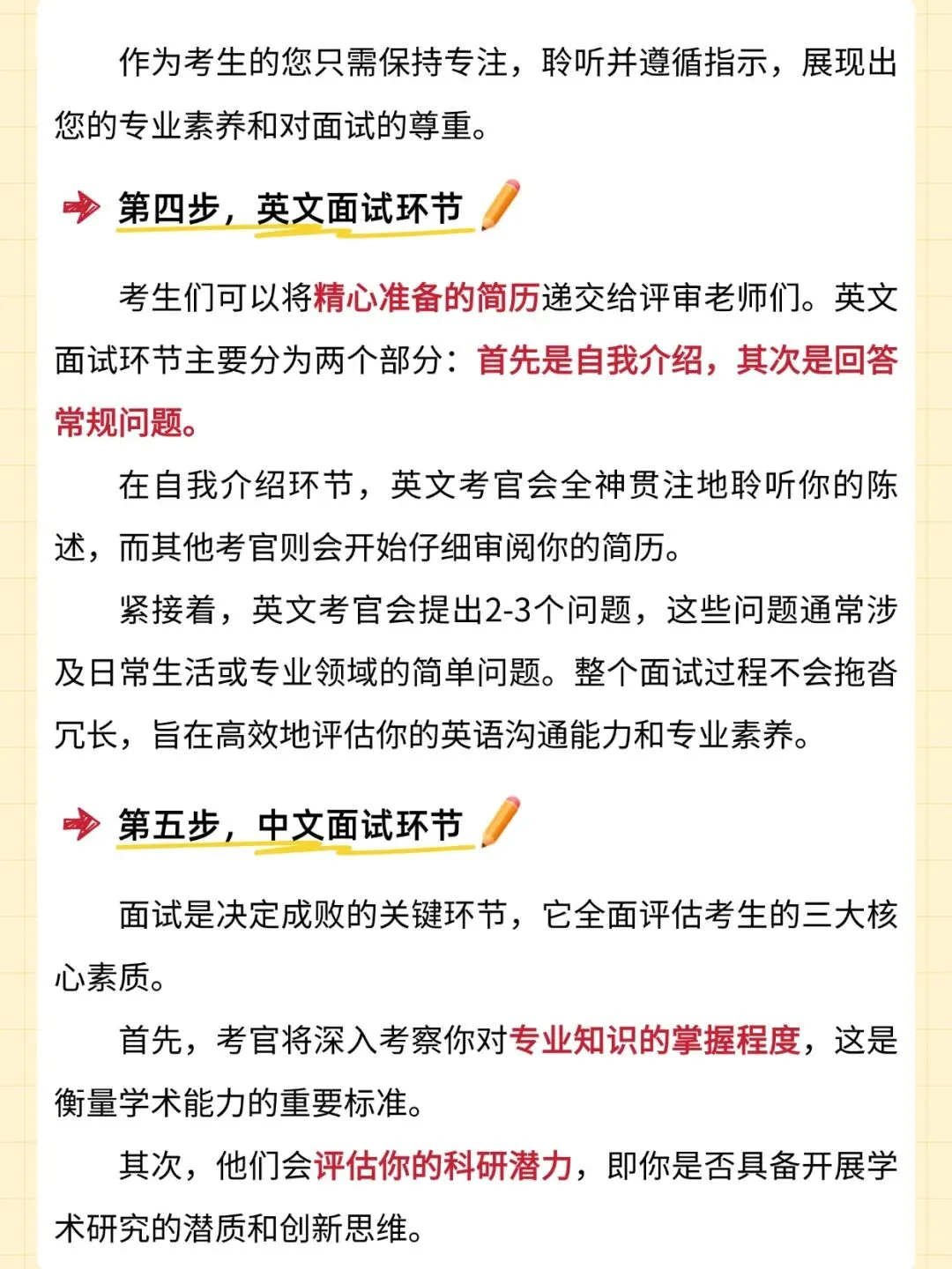 有的专业面试可能会需要用英文自我介绍,请提前准备好;在自我介绍的过程中要合理的表达自己,把自己过去的一些经历以及有什么样的实践活动以及各方面的奖励情况表达出来,也能够给面试官们一个很好的印象。注:老师非常有可能针对你在自我介绍中提到的内容进行发问,所以,在准备自我介绍的时候一定要对于老师可能问到的问题进行准备。
