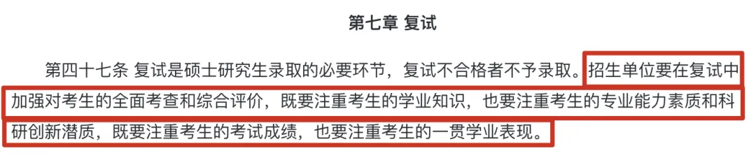 在25考研研招管理规定的在第四十七条中,特别增加了既要注重考生的学业知识,也要注重考生的专业能力素质和科研创新潜质,既要注重考生的考试成绩,也要注重考生的一贯学业表现。