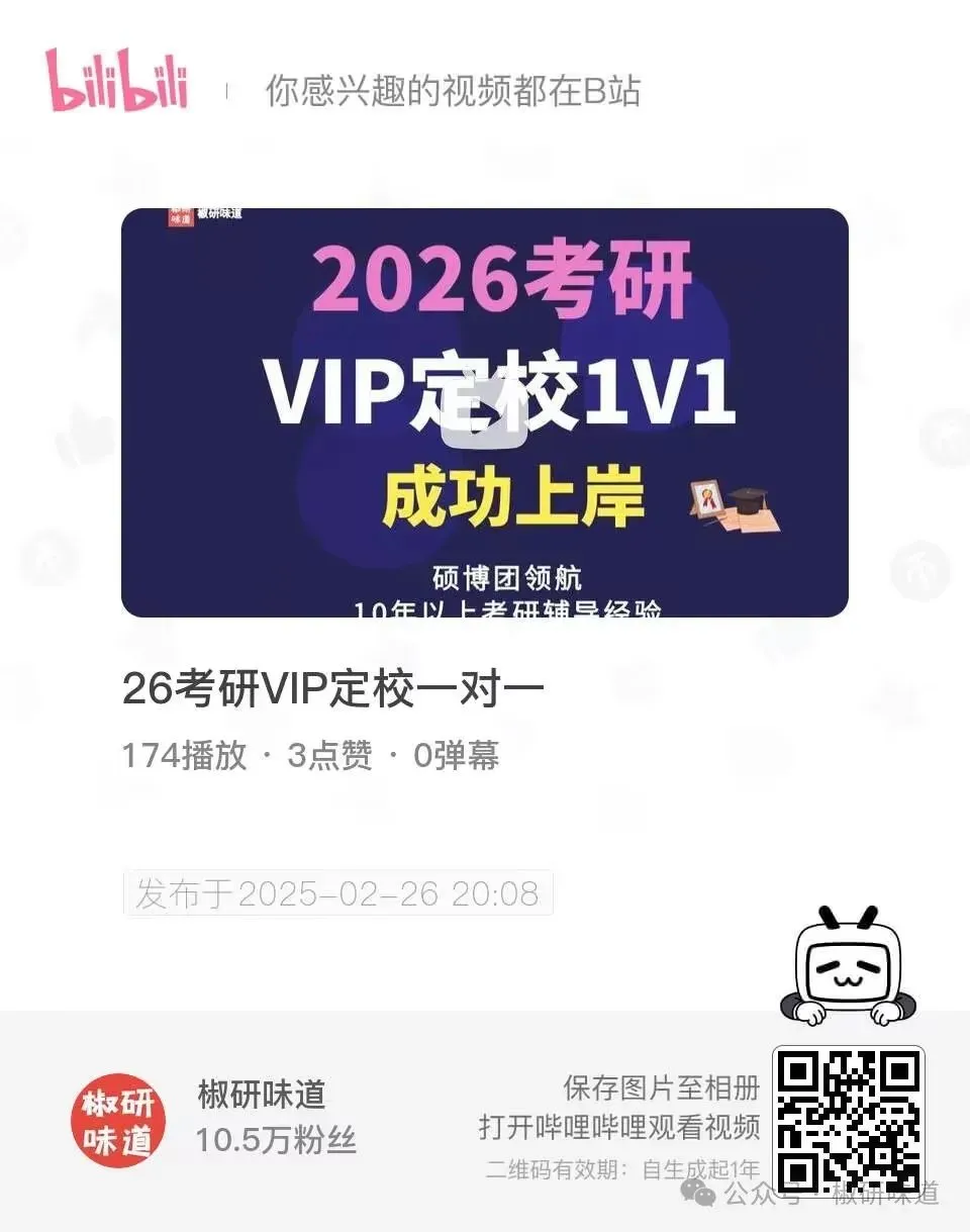 备考时间紧迫?知识点繁杂无从下手?椒研味道26/27考研VIP定向一对一服务,集结10年经验硕博天团,为你量身定制备考方案,用科学方法直击考点,助你省心省力冲刺上岸!