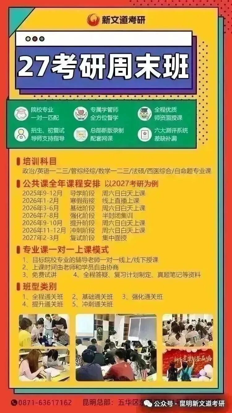 云南新文道周末全程班采取多对一、个性化、多课时、超强度的辅导模式,全天高效率,高强度的沉浸式学习