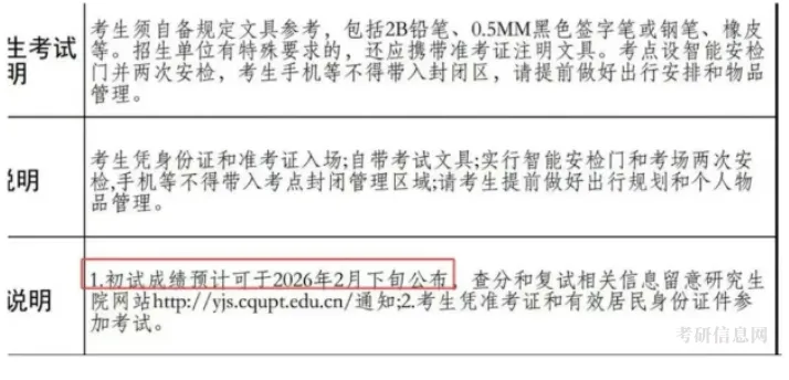 - 重庆邮电大学同样预告 2 月下旬查分,后续信息盯紧研究生院官网(http://yjs.cqupt.edu.cn/)。