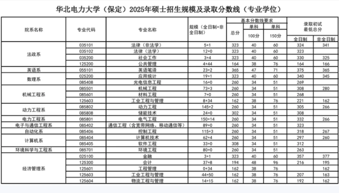 首先让我们来看一下华北电力大学(保定)2025年硕士招生规模及录取分数线~