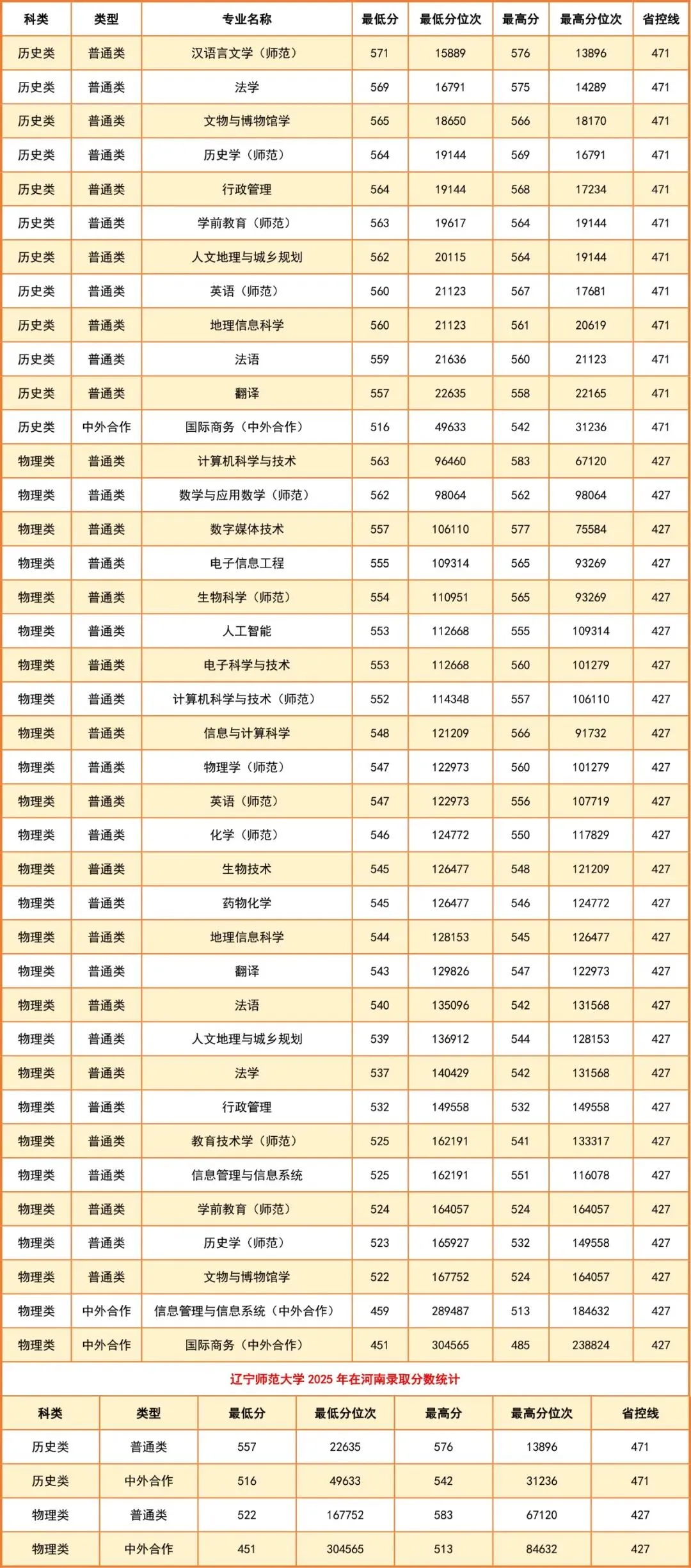 >辽宁师范大学2025年专业排名及本科录取线