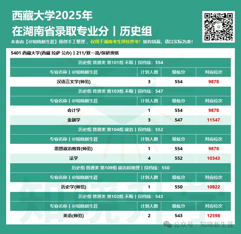 为助力湖南的高中家长和考生科学定位目标高校,【知晓新生涯】公众号将陆续整理发布《全国各大学2025年在湖南省各专业录取分数线及对应位次》。数据表格包含各专业录取分数及对应的位次,并已按各专业组的专业录取最低分进行了高低排序,更能直观显示每个专业录取分数与其专业组投档线的分差,助力高中家长和考生一眼看清专业“冷热”,评估录取难度。参考往年,瞄准未来,愿这份整理成为湖南高中学子们冲刺路上的“导航仪”!