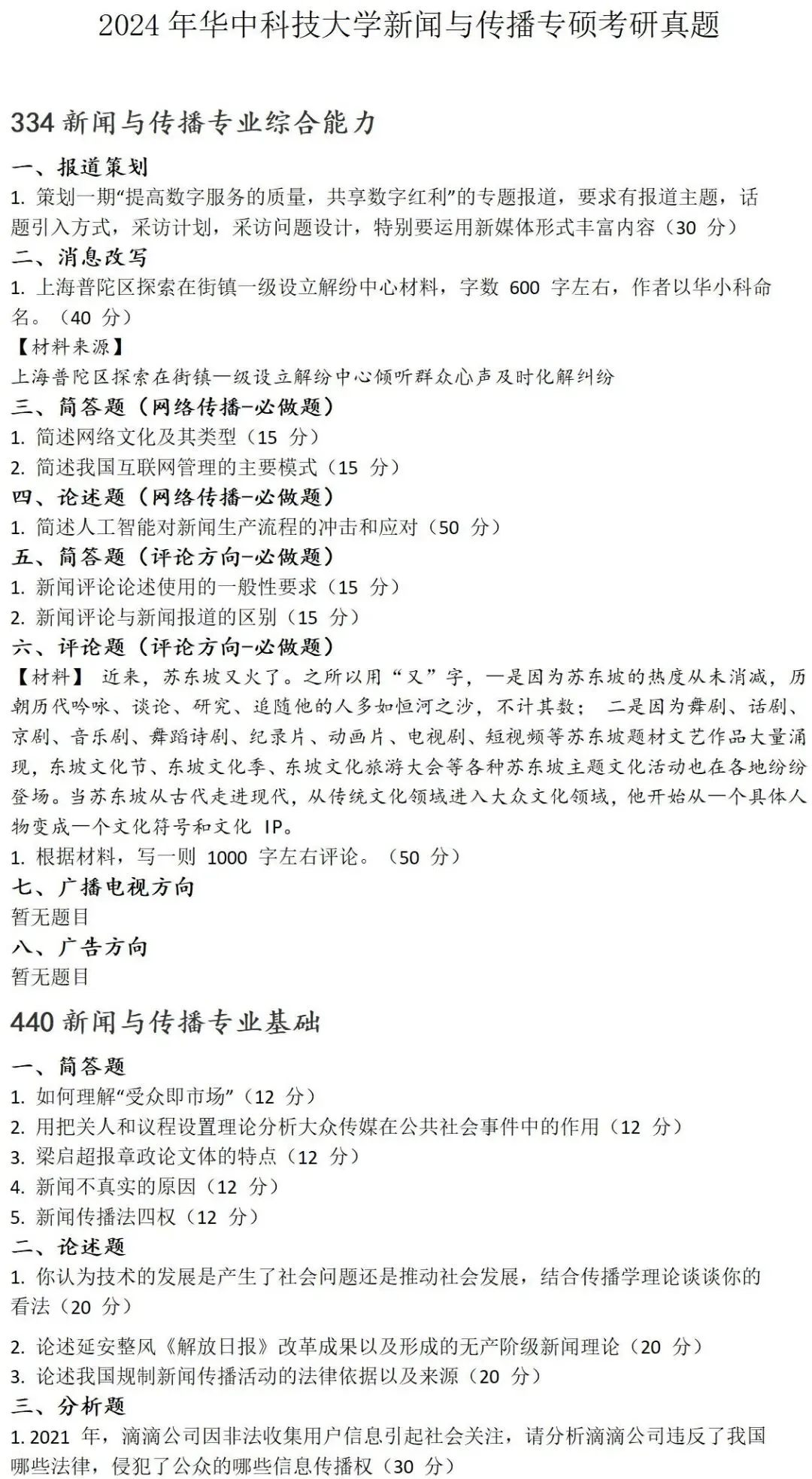 >华中科技大学新闻与传播考研真题2024