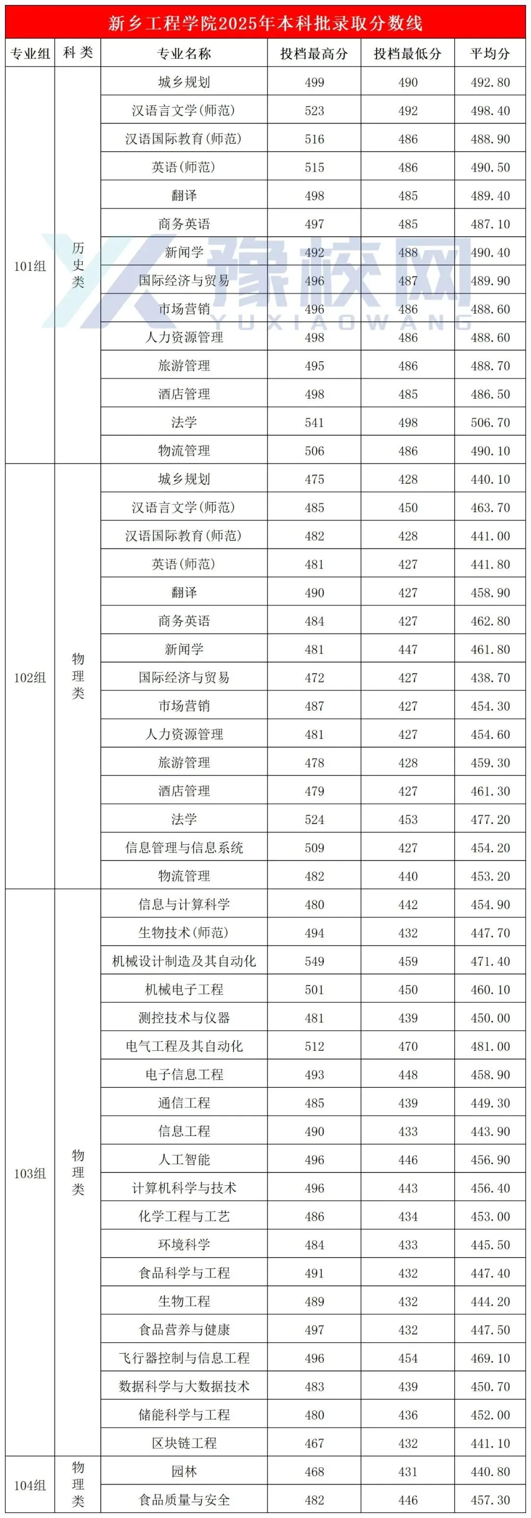 >新乡工程学院2025年河南省本科批录取分数线