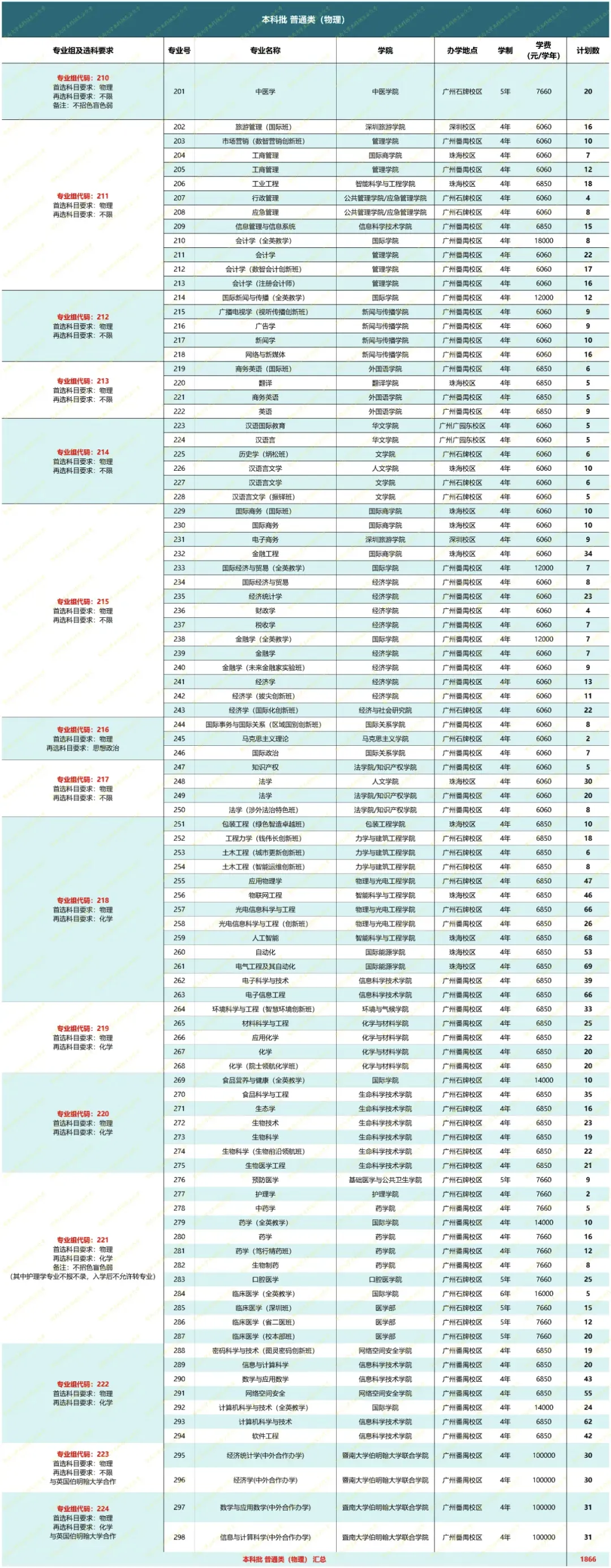 学校在广州、深圳、珠海三地设有五个校区,校本部在广州市天河区黄埔大道。校园占地总面积226.81万平方米,校舍建筑面积183.26万平方米。学校设有38个学院、59个系,18个直属研究院(所);本科专业108个,一级学科博士学位授予点28个,一级学科硕士学位授予点41个,专业学位授权类别41种;博士后流动站24个,博士后科研工作站1个;国家“双一流”建设学科1个,国家重点学科二级学科4个;国家级一流专业建设点52个(截至2025年3月)。