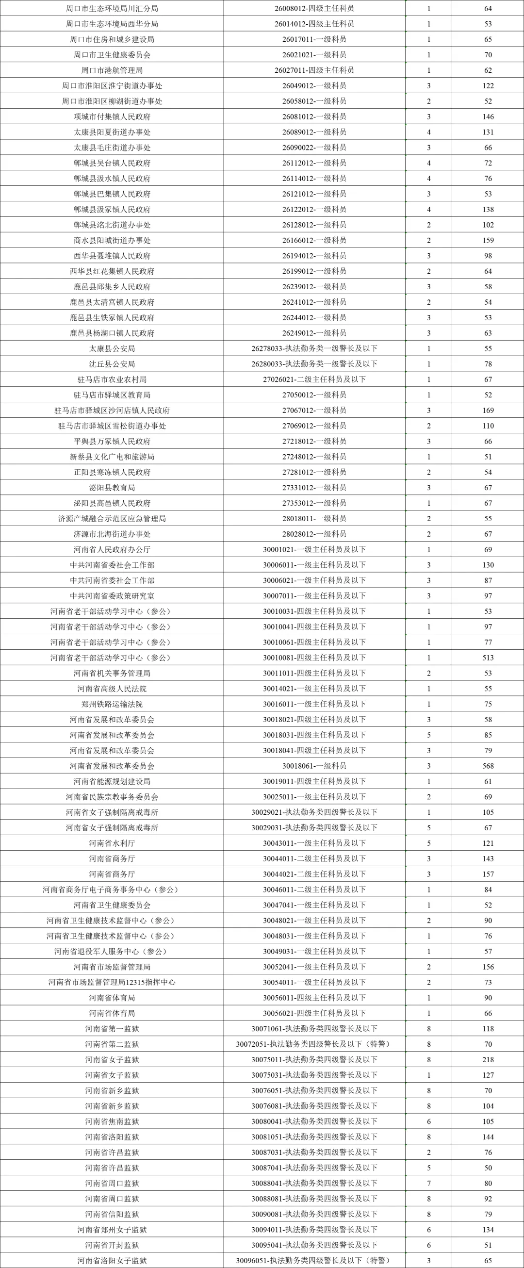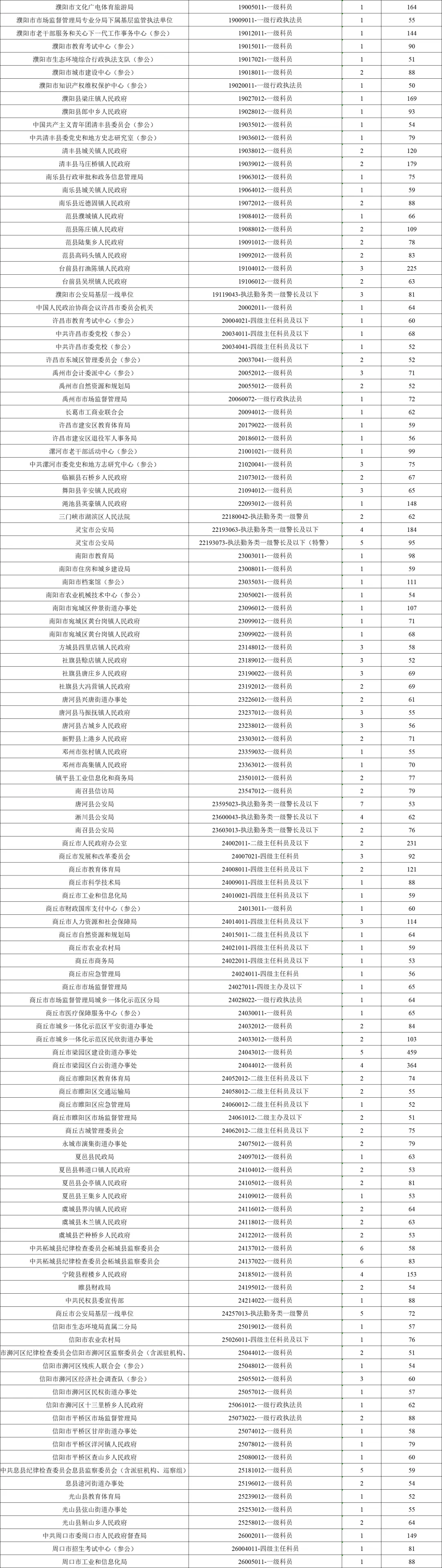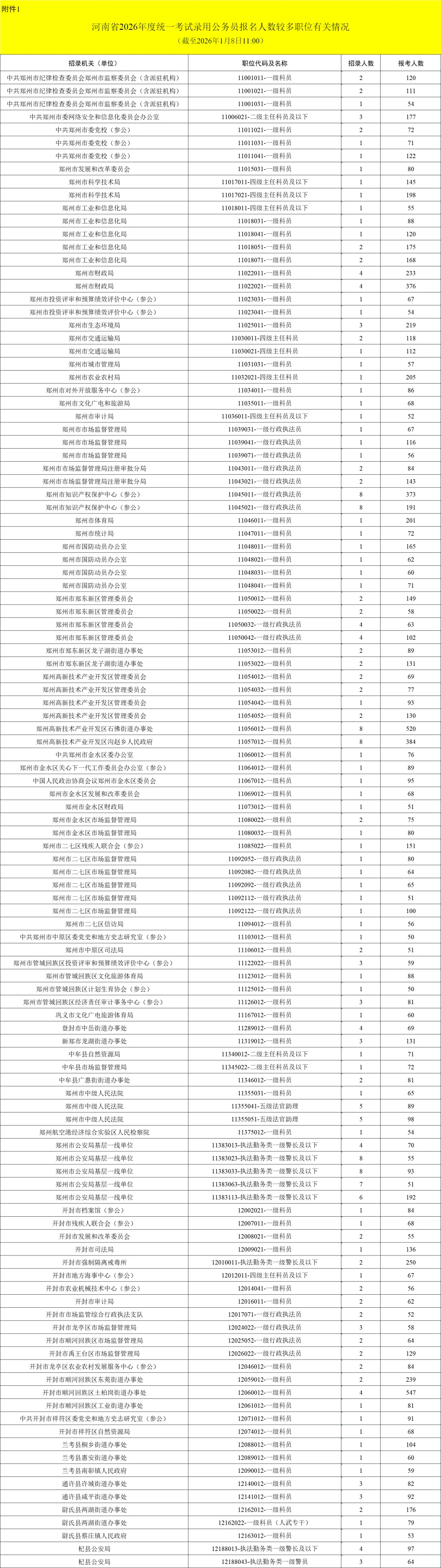 1. 河南省2026年度统一考试录用公务员报名人数较多职位有关情况