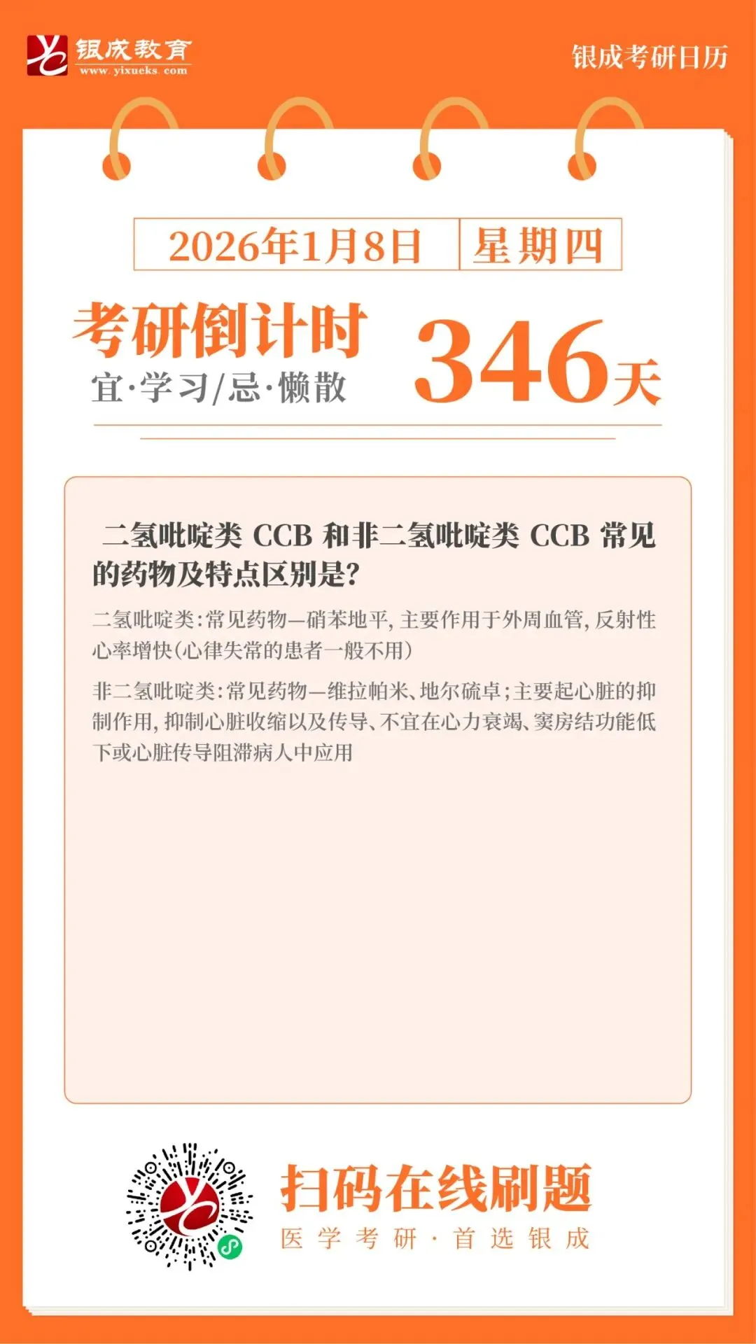 >【考研日历】二氢呲啶类CCB和非二氢呲啶类CCB常见的药物及特点区别是?
