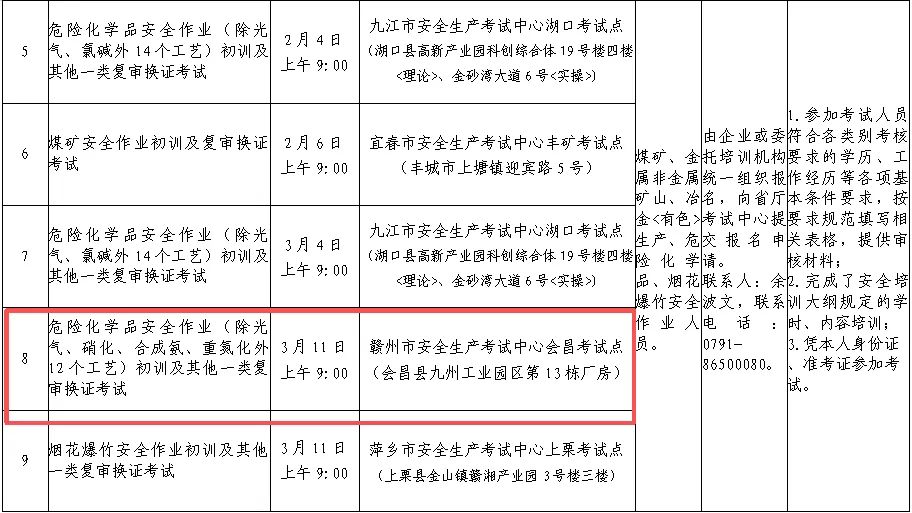 >一类(危险化学品安全作业)考试时间已定!!速查会昌考试点一季度时间