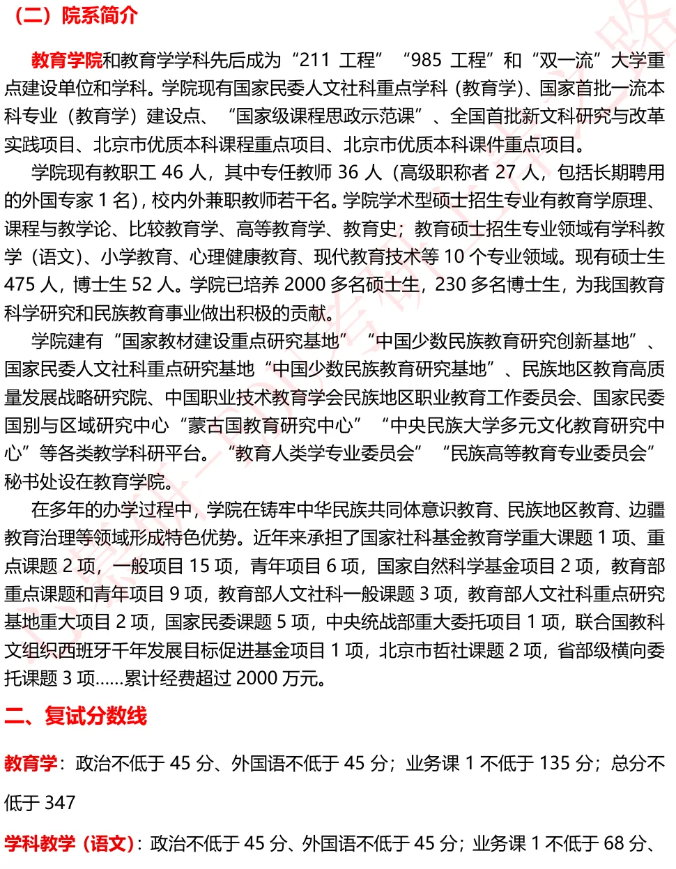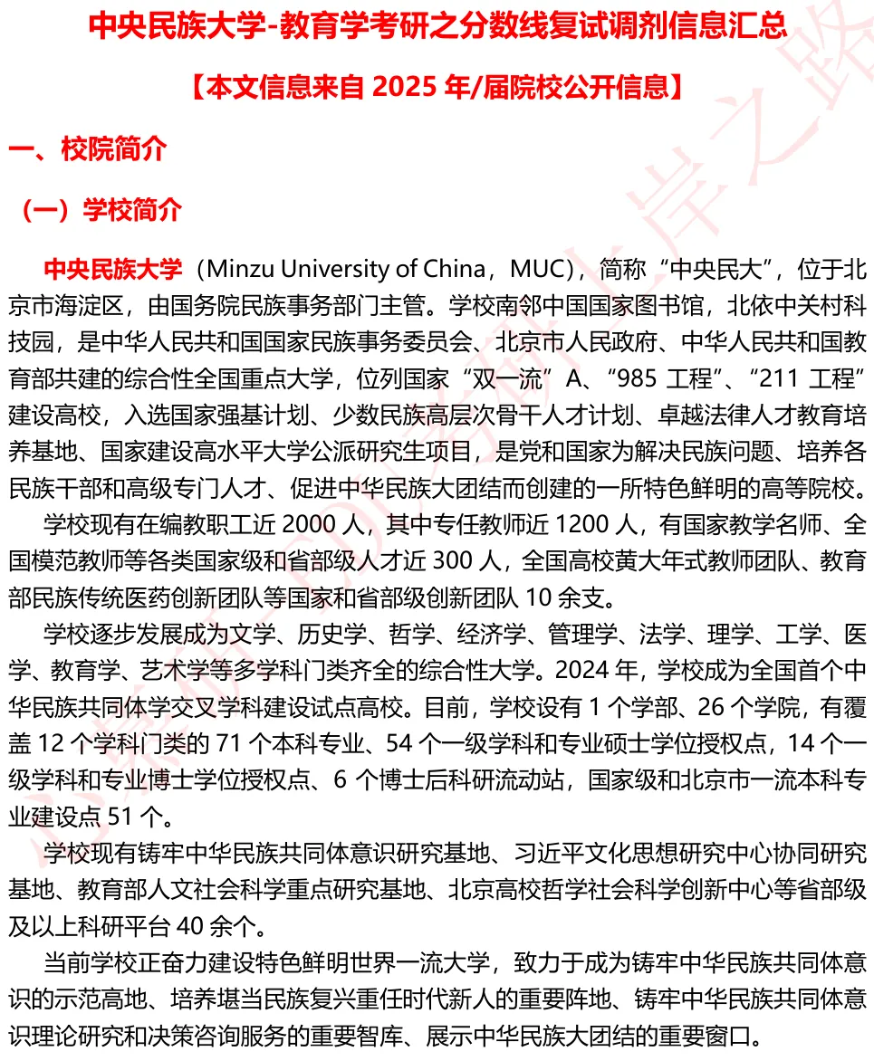 26复试参考:中央民族大学-教育学考研之分数线复试调剂信息