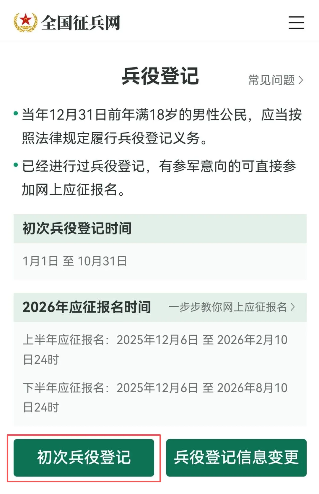 第三步 点击“初次兵役登记”