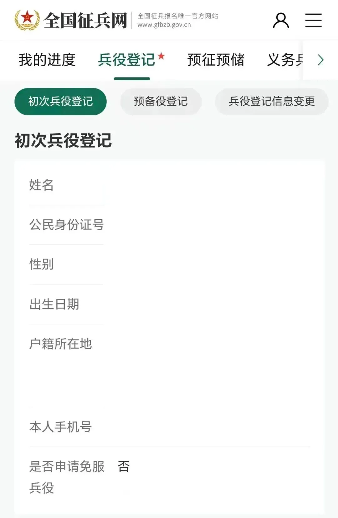 第九步 点击“兵役登记”