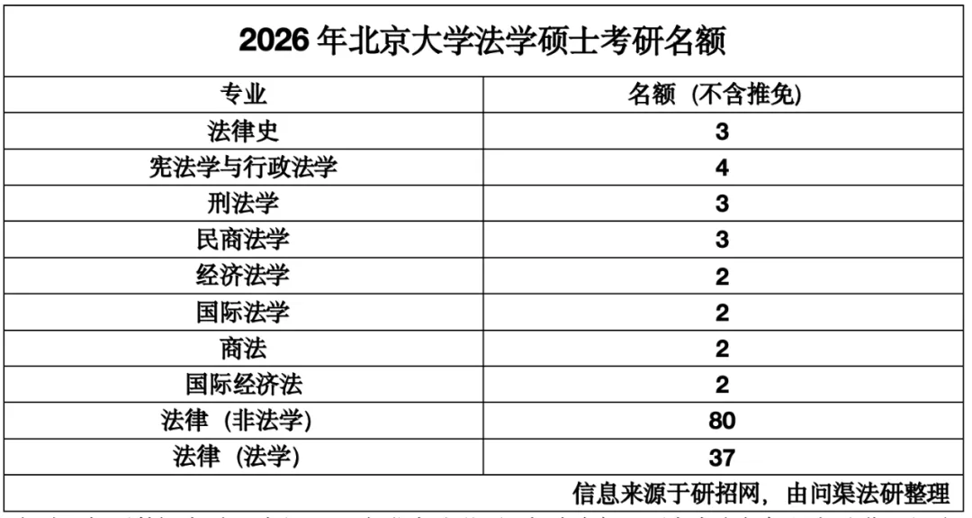 2.刑法、民商法等为传统热门专业(竞争略大),法律史、宪行等为传统冷门专业(竞争略小),法理专业暂时停招,因此不考虑在内。其余专业的竞争大多介于其间。原则来说,如果只考虑上岸北大学硕而不考虑专业,我们建议无脑选择法律史,但2026年考研除外(也就是刚刚结束初试的这一年考研,我们首推国际法)。