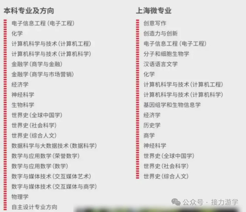 说明:除上纽、昆杜综评招生专业为2026年最新招生信息外,其他高校招生专业均来源于2025各高校招生简章,仅供大家参考,具体请以当年最新招生信息为准。