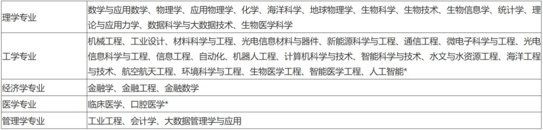 物理学、化学、材料科学与工程、生物科学、生物技术、生物医学工程、电子信息工程、计算机科学与技术、数学与应用数学、管理科学、工业设计、外国语言与外国历史共12个本科专业