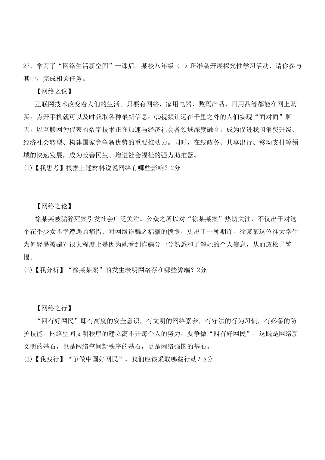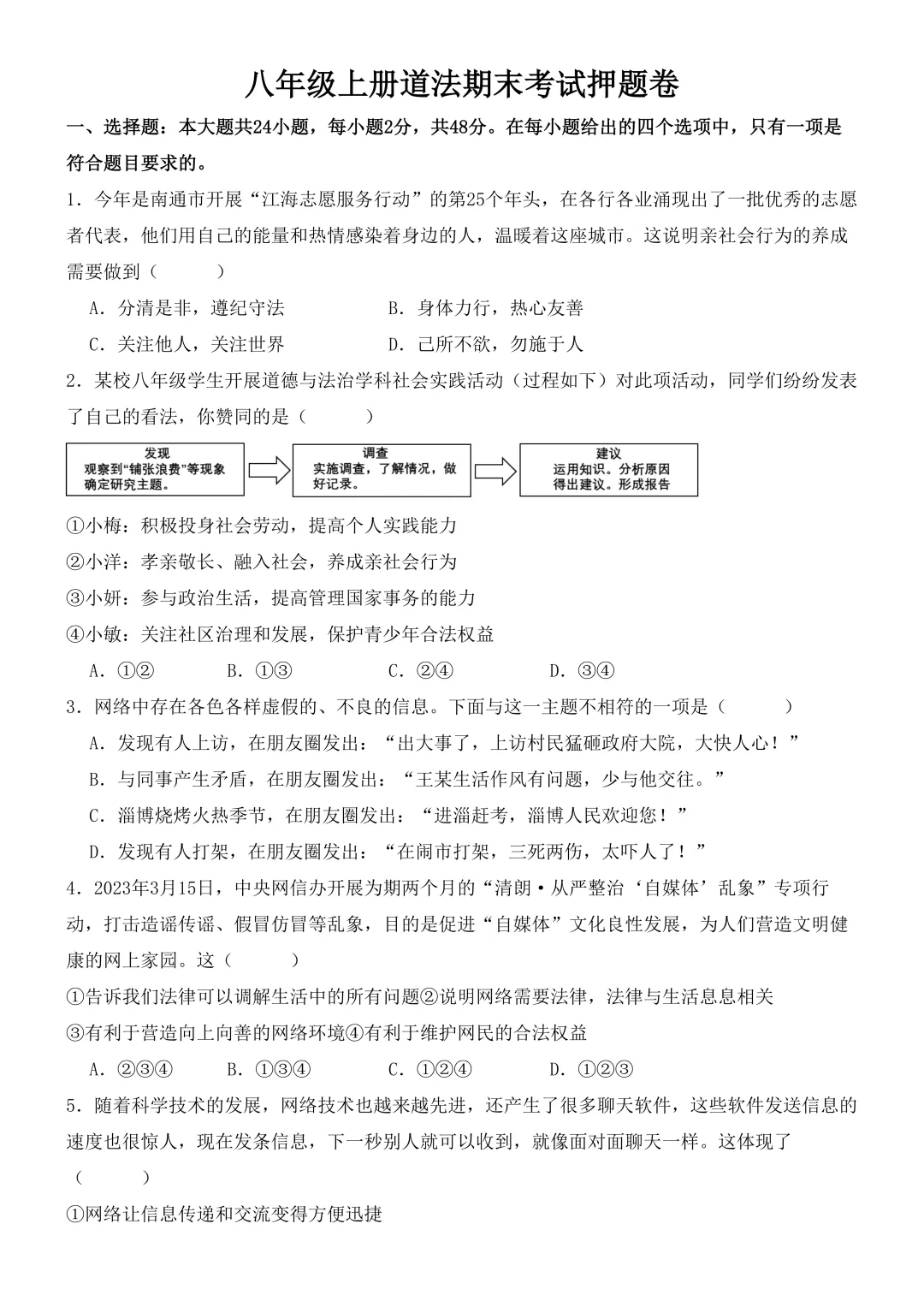 八年级上册道法期末考试押题卷,满分 100 分,涵盖全册考点。包含选择、分析说明题等核心题型,聚焦亲社会行为、网络生活等重点模块,附详细答案解析。电子版可打印,综合检测、冲刺期末、道法备考专用!#八年级上册道法#期末押题卷#综合检测#初二道法#道法备考