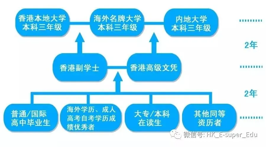 副学士课程就是本科的第一第二年,学生副学士毕业后升读本科,拿到的学位和直接入读大学本科的学位证书是完全没有区别的,跟内地的“专升本”不是一回事。