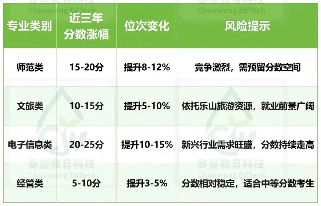 2025年乐山师范学院在四川省计划招生3270人,其中历史类949人,物理类2321人。招生人数最多的5个专业分别是:3. 录取分数波动分析