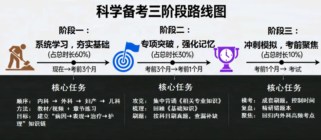 下图为你规划了从基础夯实到考前冲刺的完整备考周期,科学分配时间,避免盲目学习: