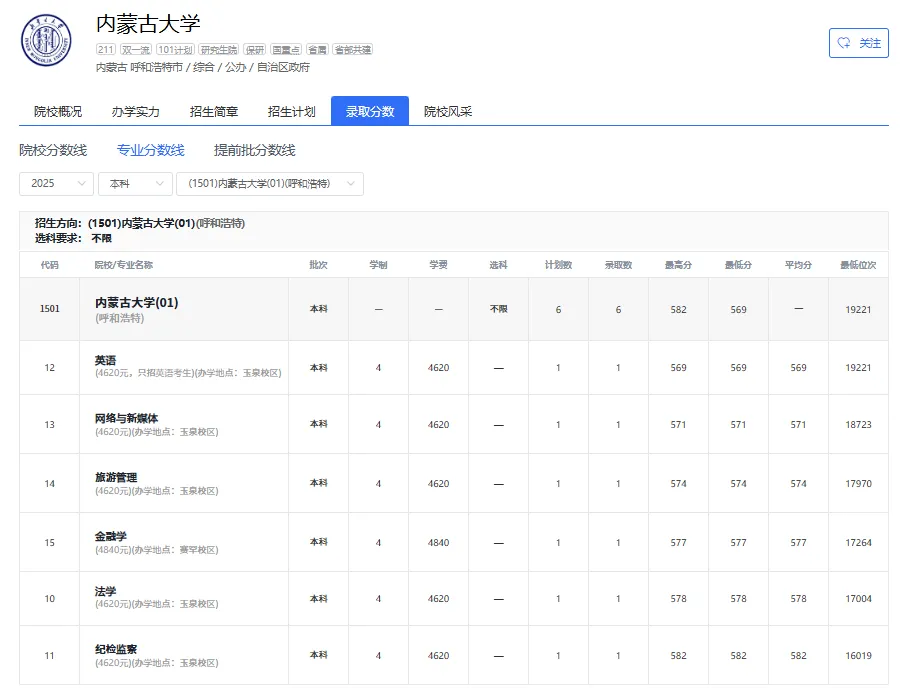 2025年|东北师范大学在京最低录取分数线及位次排名