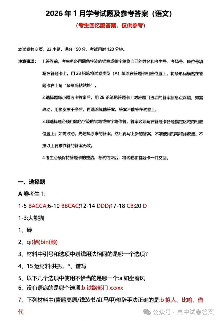 >广东2026年1月学考试题及参考答案