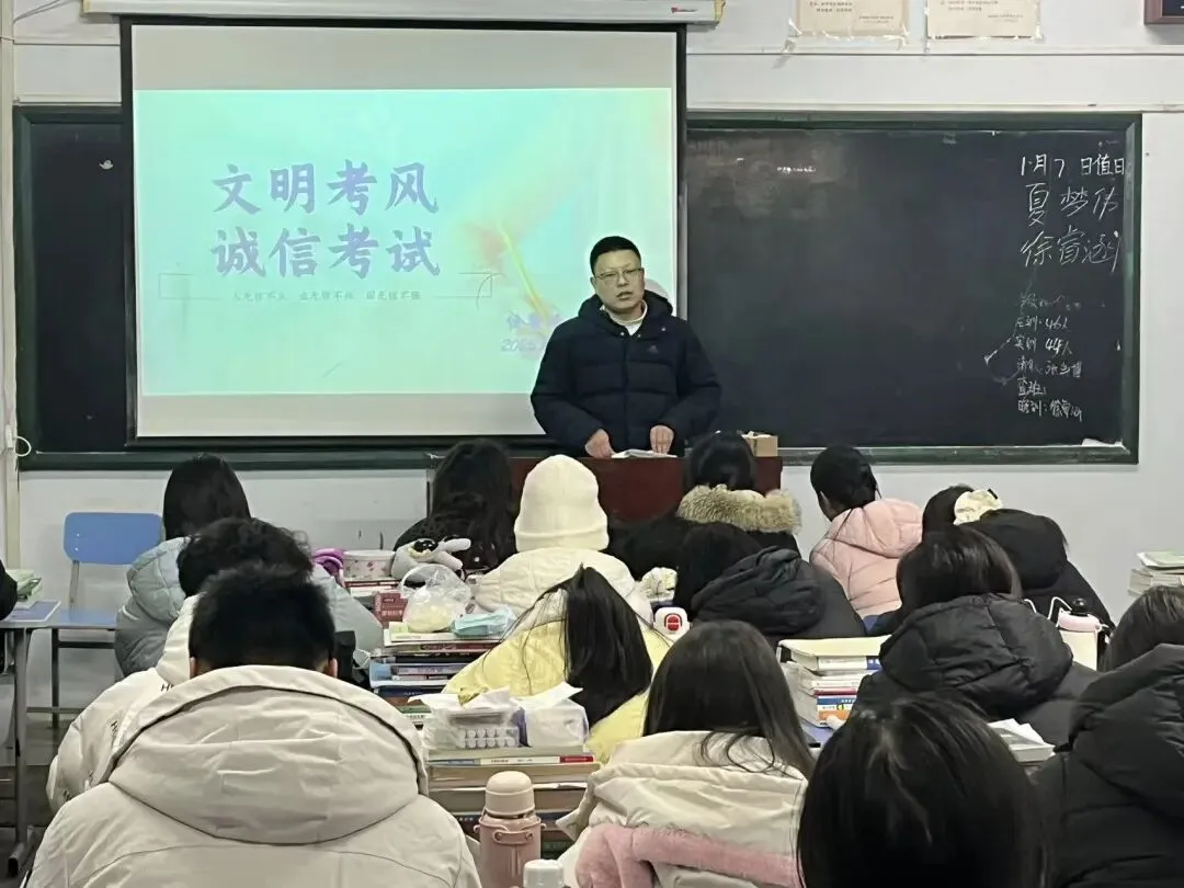 亲爱的同学们,笔墨为剑,诚信为锋;考场争锋,品德先行。本次班会强调的诚信应考准则、科学备考方法、考场纪律要求及违纪后果,望大家铭记。让我们携手营造公平公正的考试氛围,用诚信书写青春答卷,用实力彰显学子风采!预祝同学们期末考试取得理想成绩!