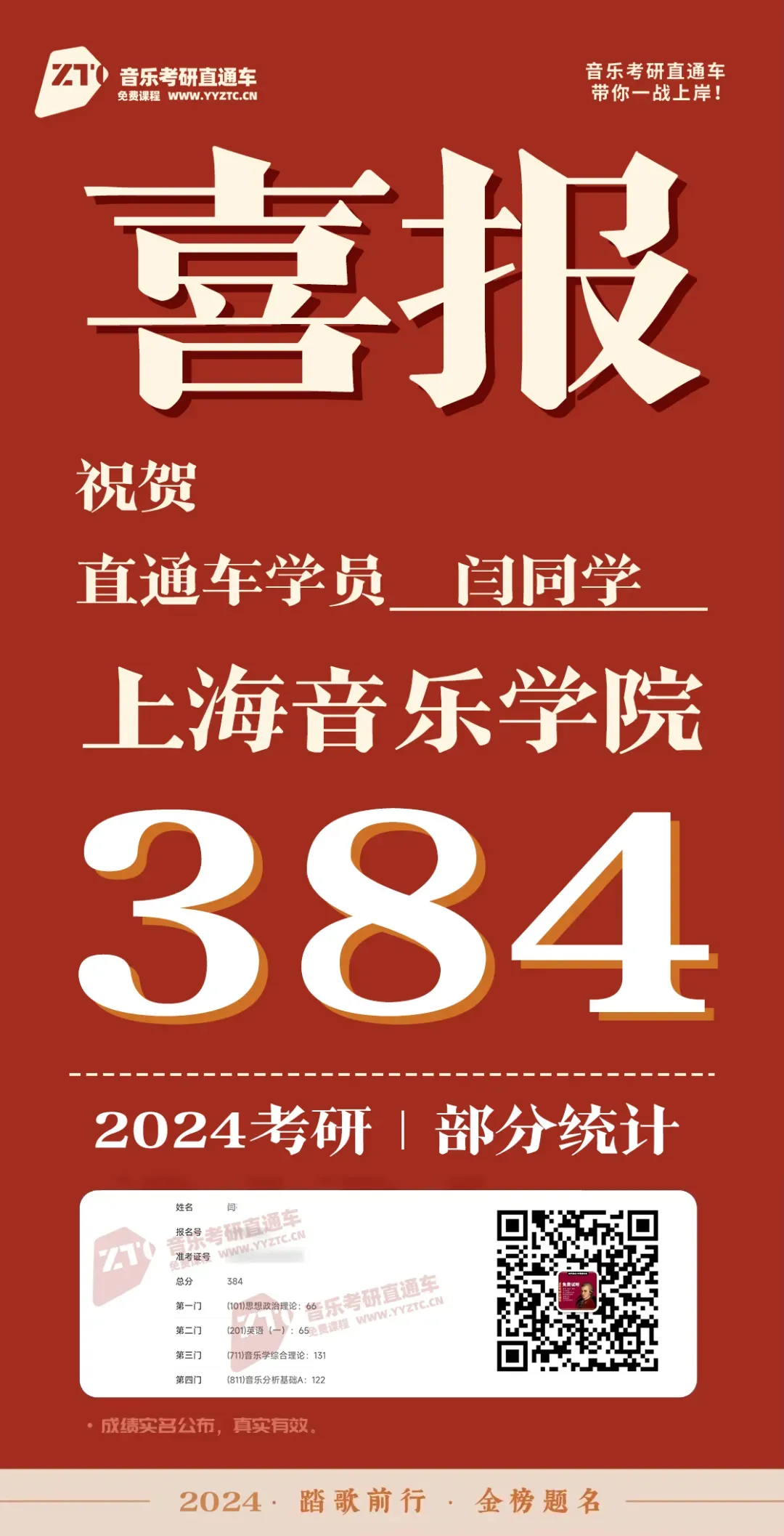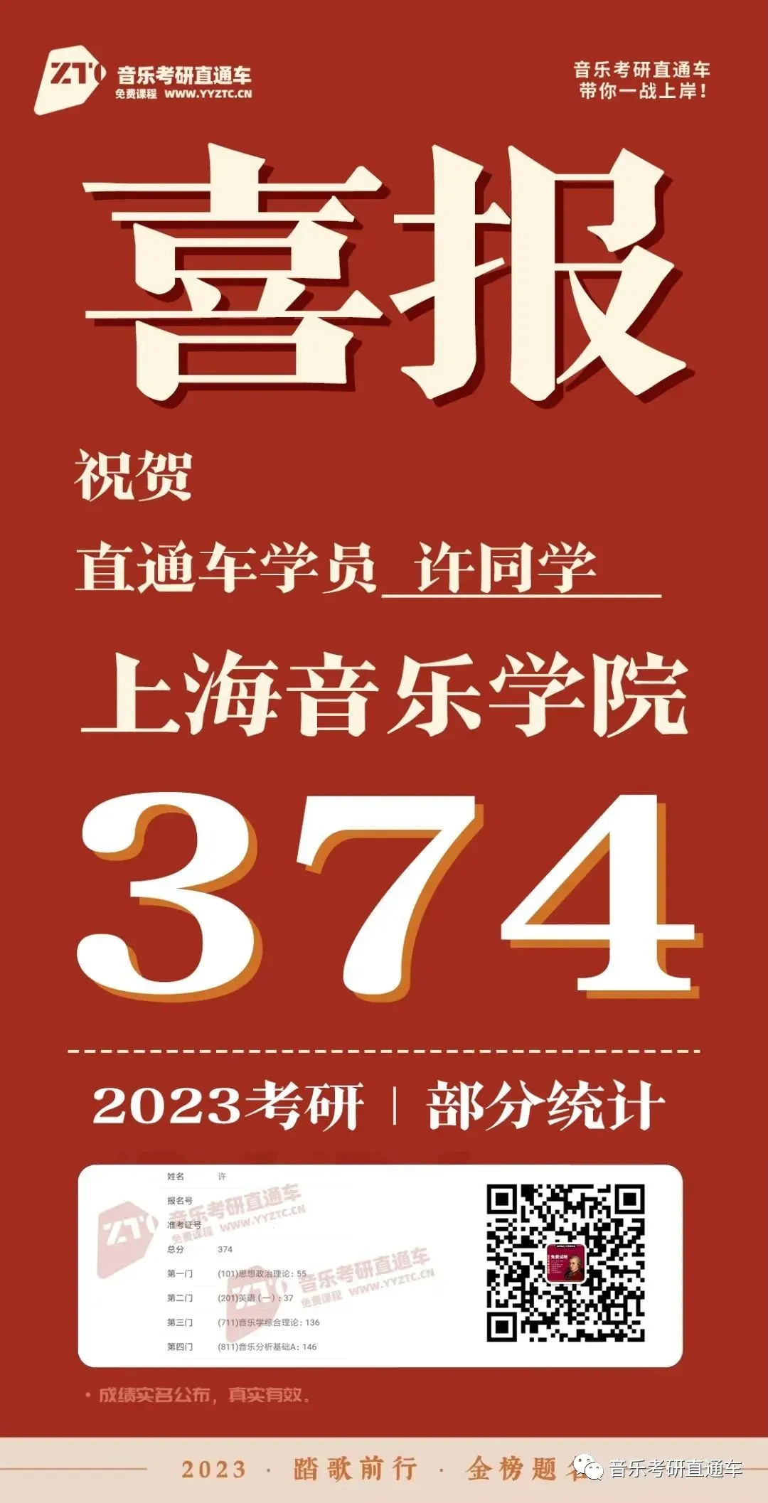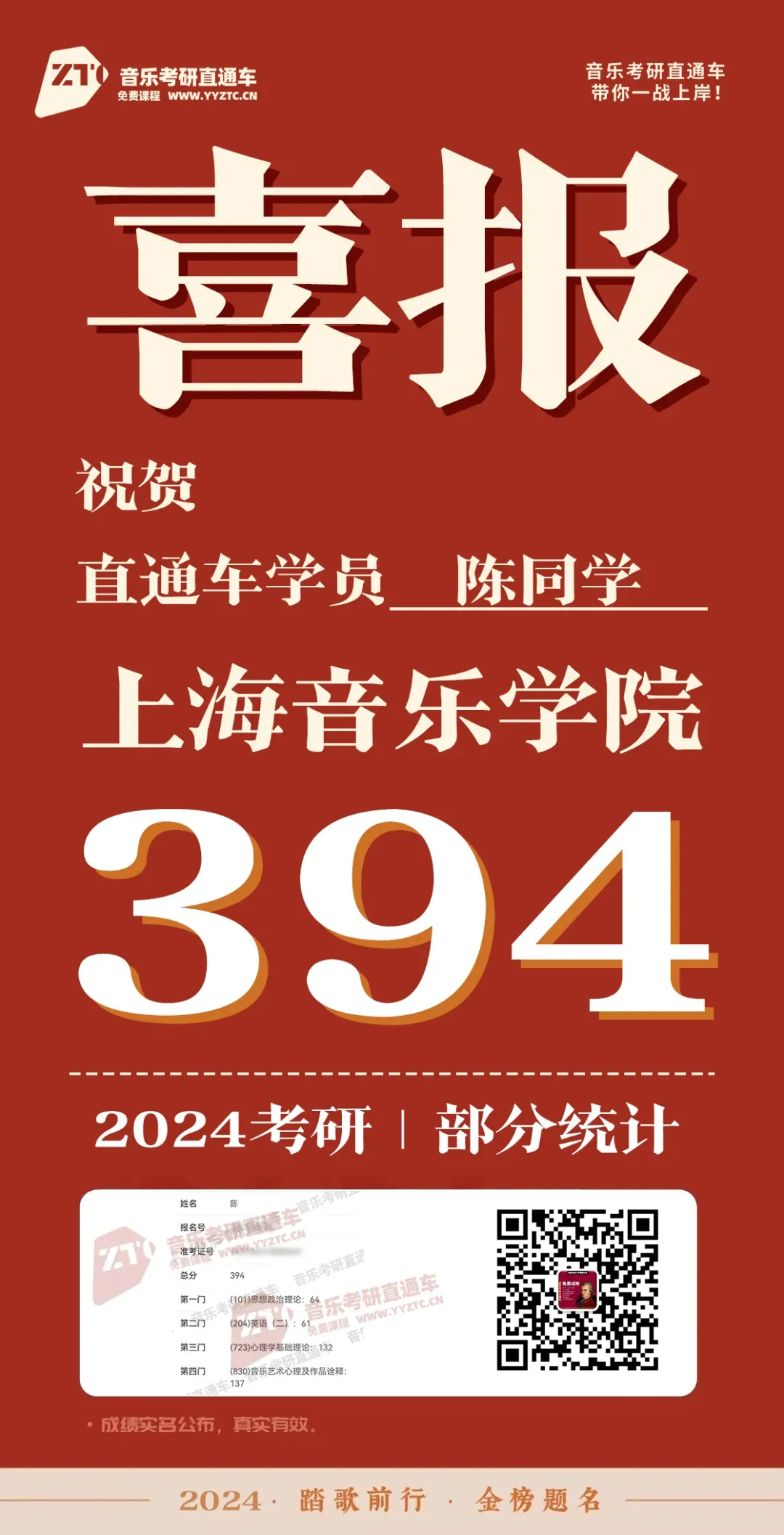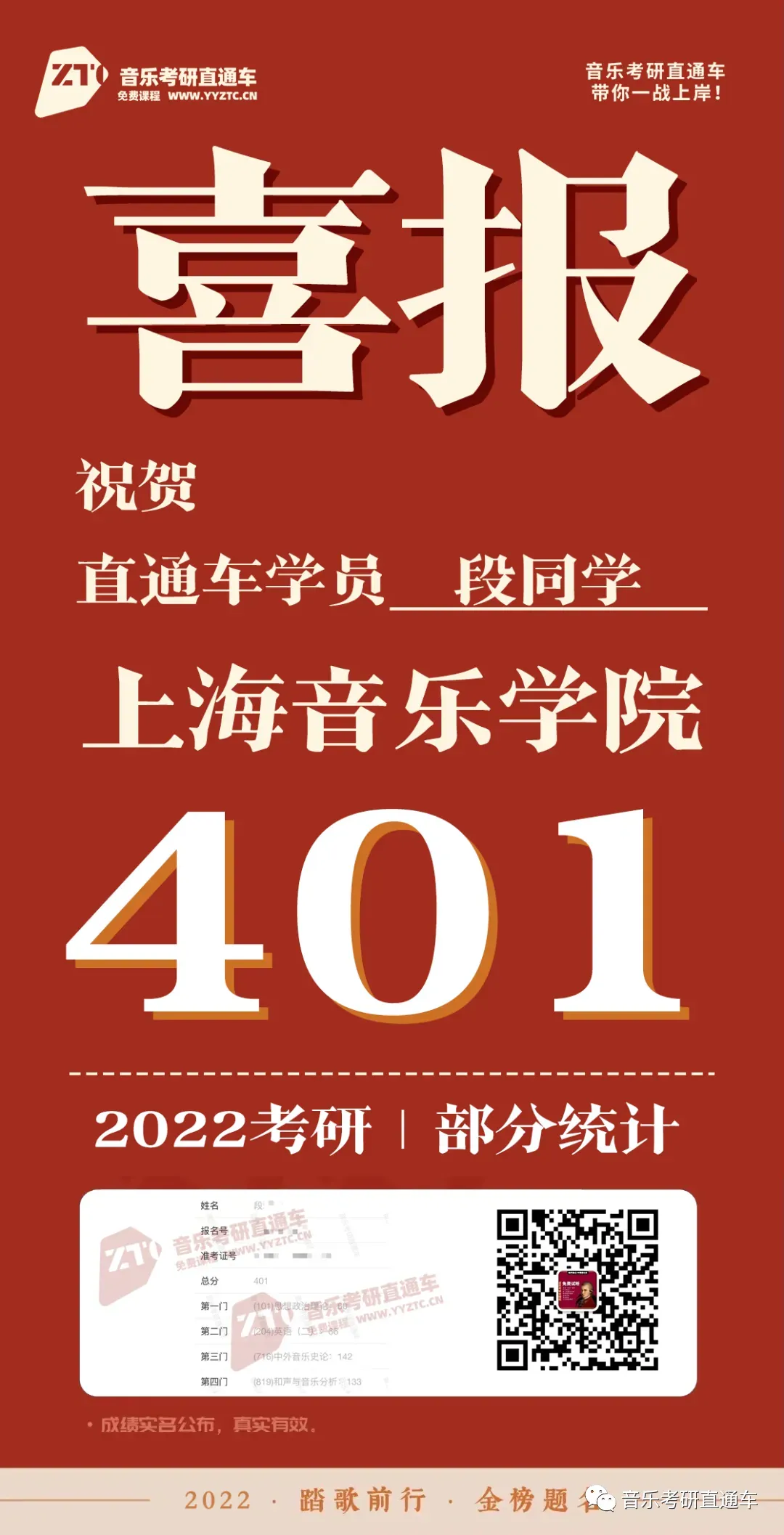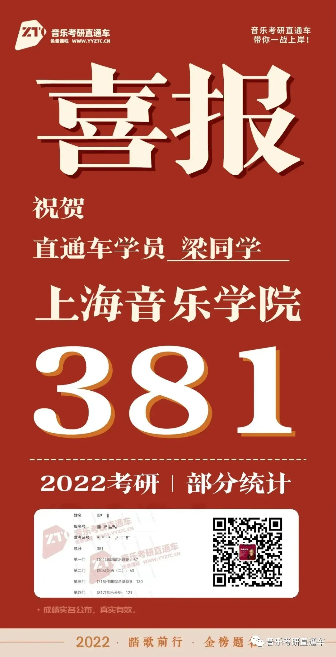 上海音乐学院,音乐考研直通车学员历年部分成绩单: