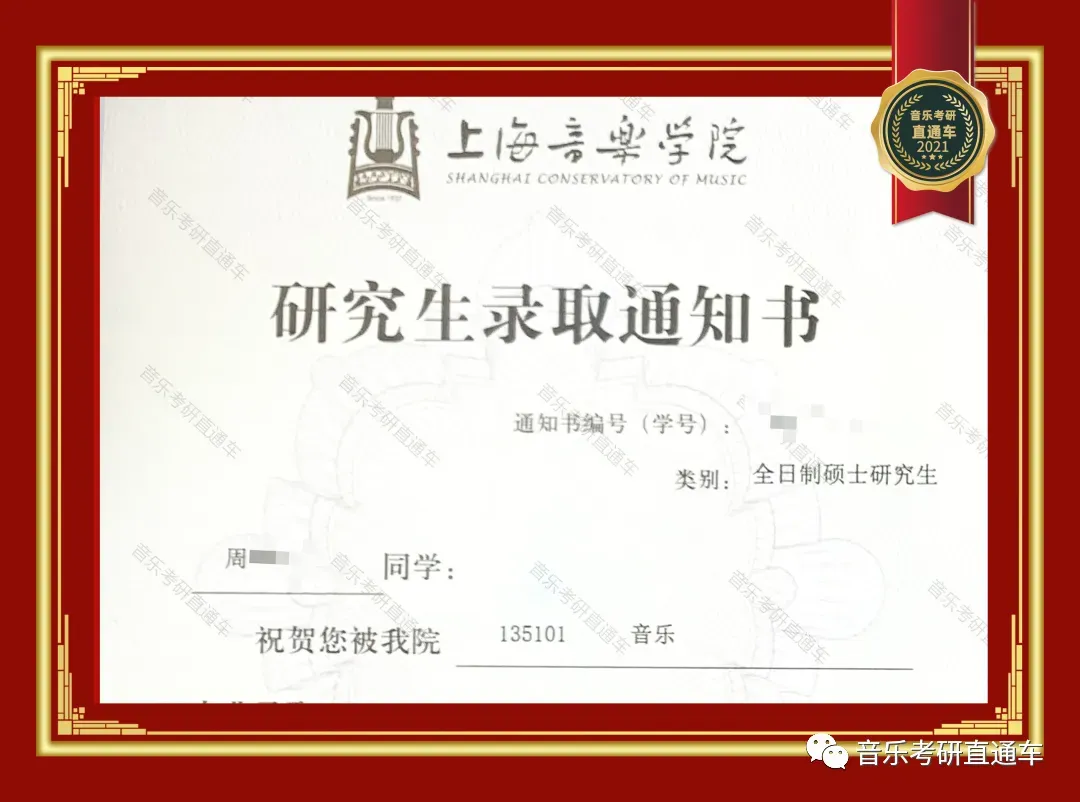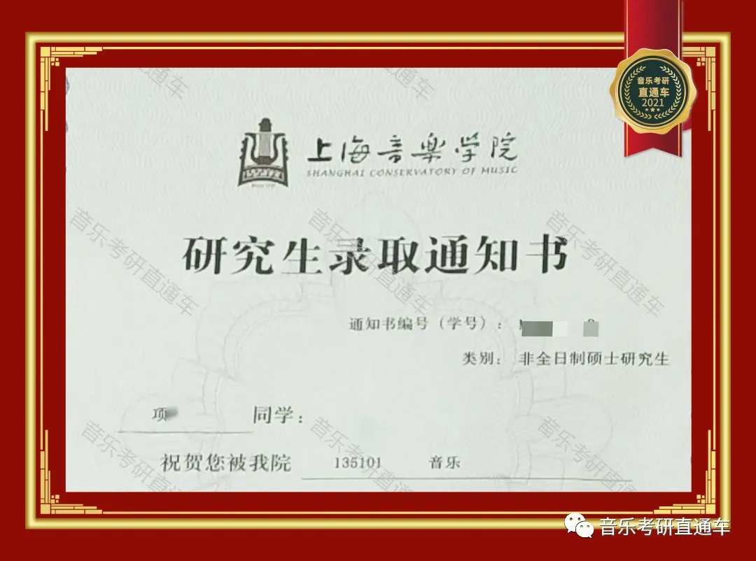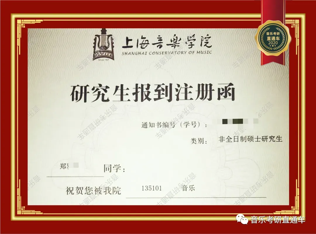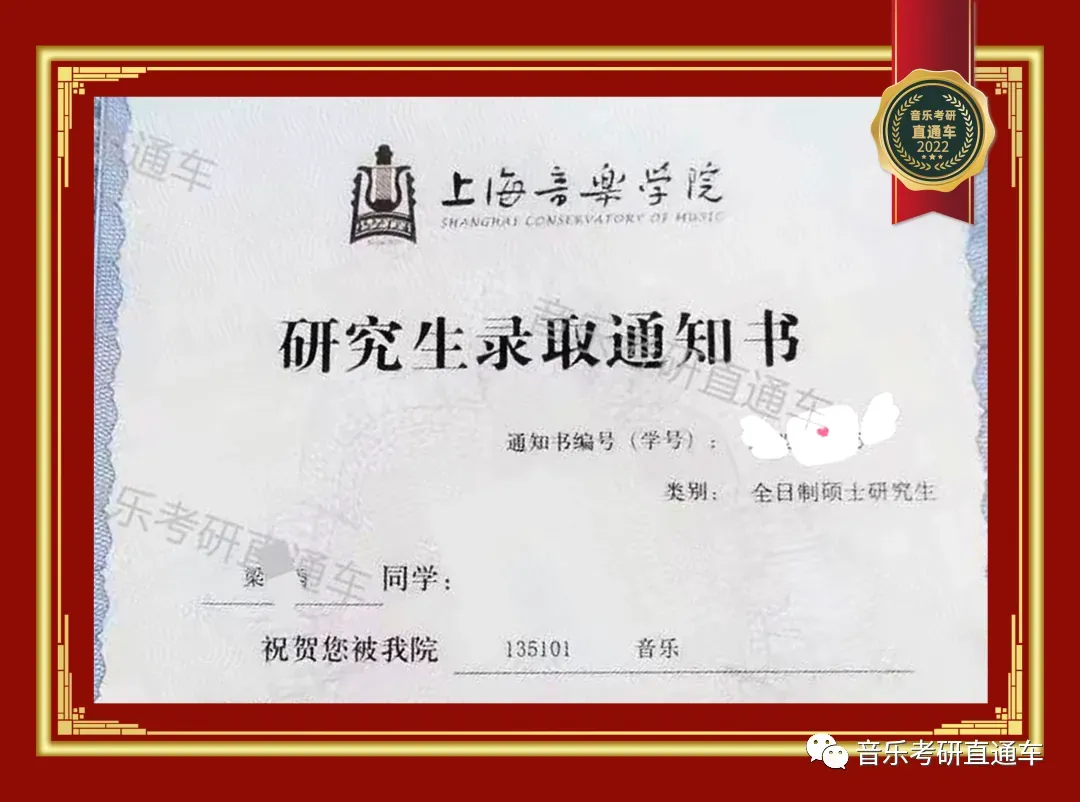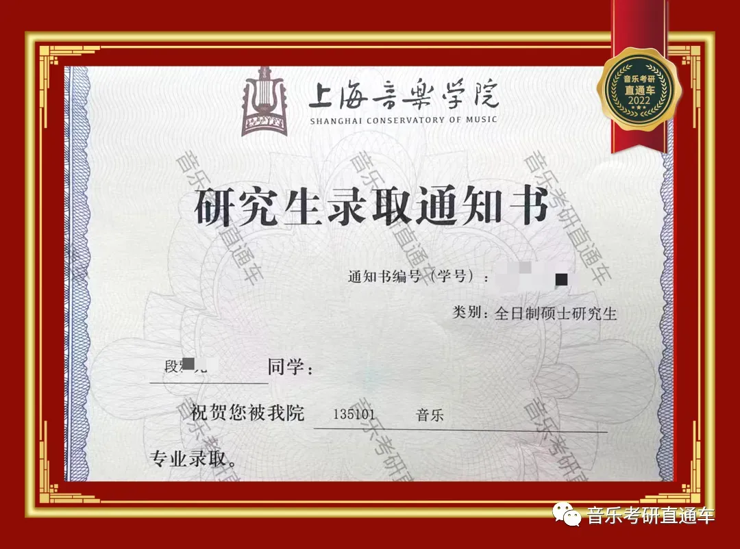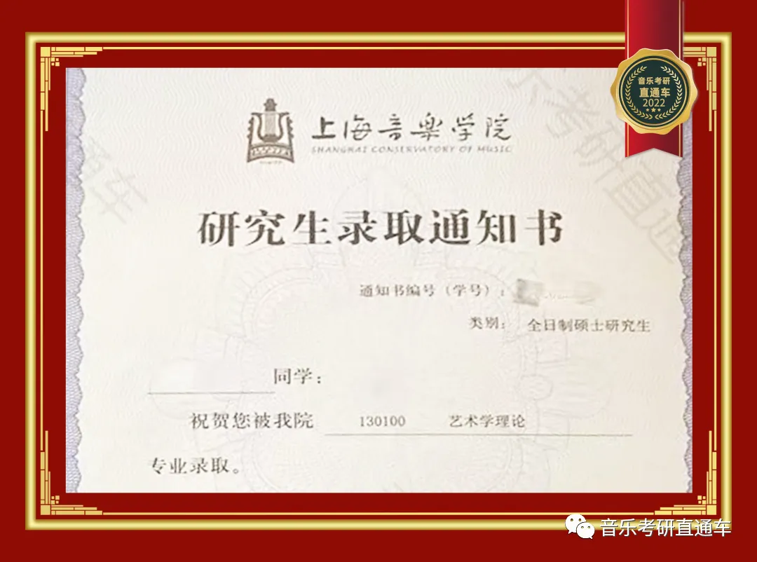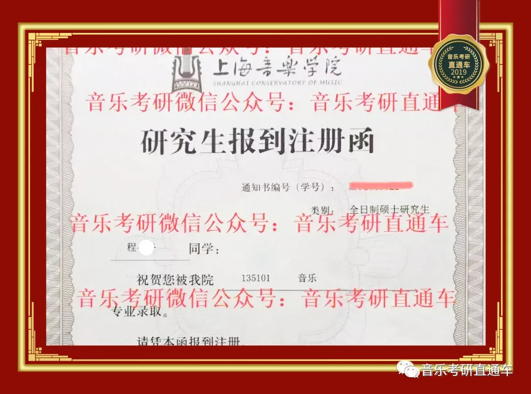 上海音乐学院,音乐考研直通车学员历年录部分取通知书