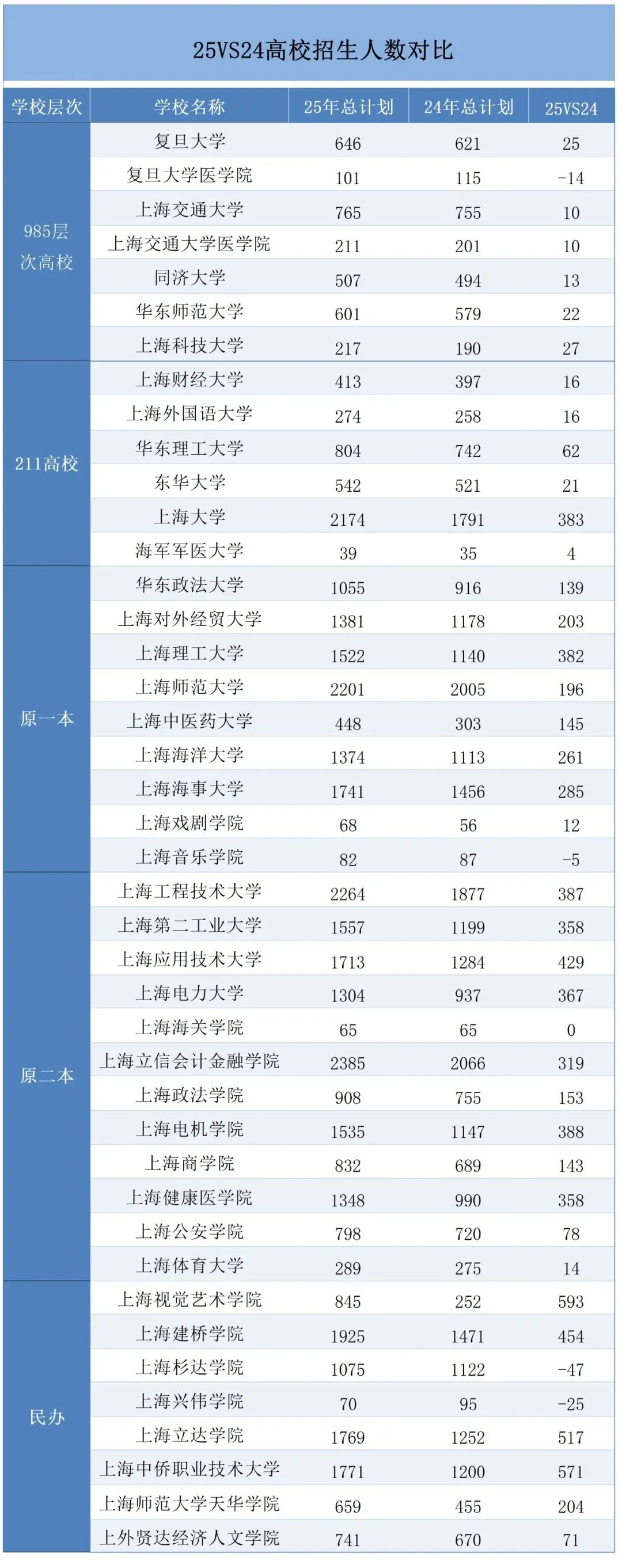 上海高校录取数据对比