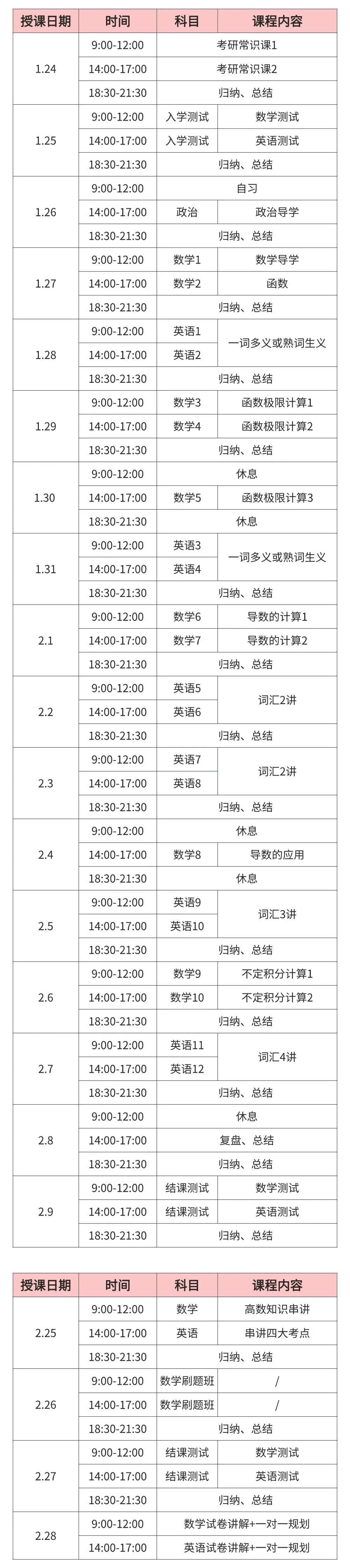 开营时间:1 月 24 日正式开课,提前抢占 27 考研备考先机