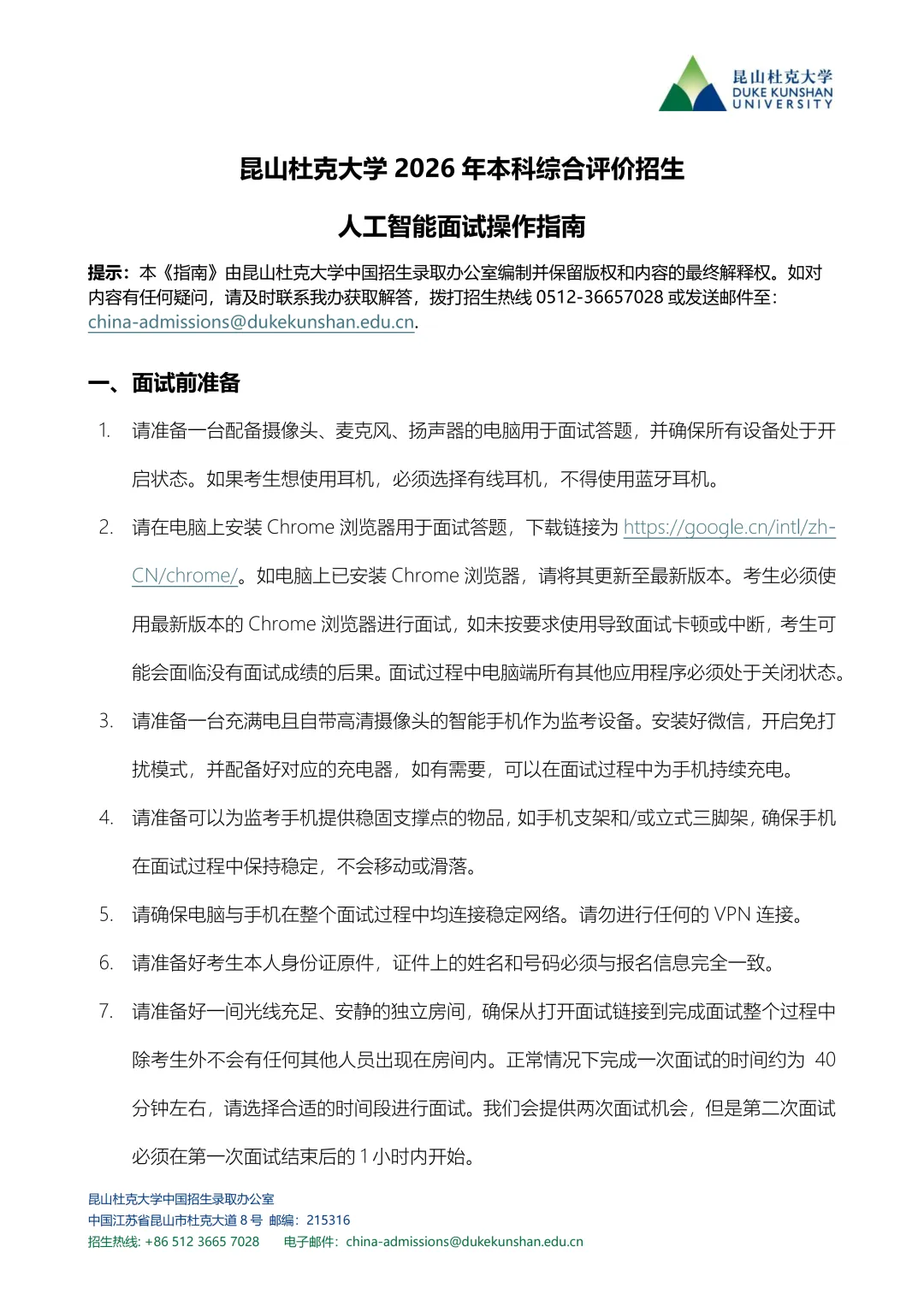 2026年昆山杜克大学综合评价AI面试邀请已发放,考生家长可以去报名系统或邮箱内查看通知。昆杜2026综合评价第二轮报名即将于2月5日截止,还没有报考的考生家长要抓紧时间了!