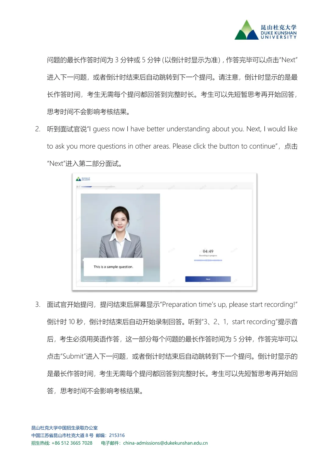 第三步:人工智能面试:虚拟面试官提问,提问结束后自动开始作答倒计时,考生必须用英语回答,每个面试问题最长作答时长3分钟或5分钟。