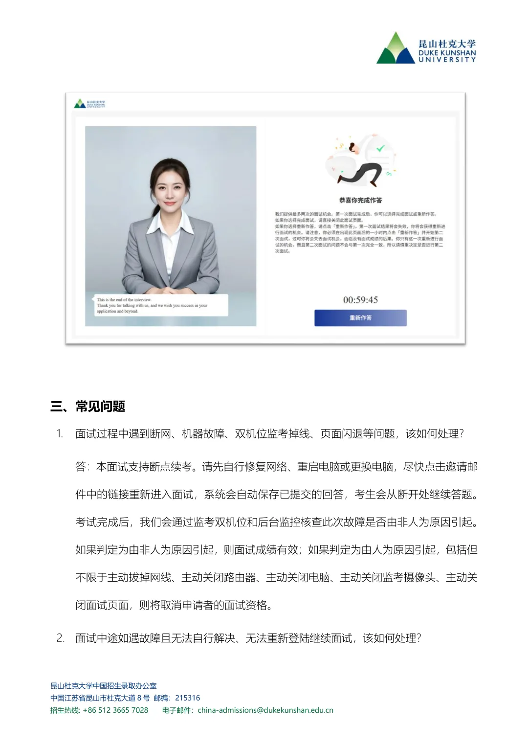 面试时间:1月9日9:00至1月19日23:00之间完成,面试全程大约需要40分钟左右的时间,每位考生均有最多两次面试机会。